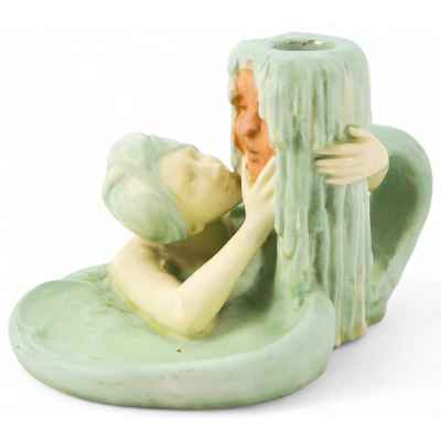 Скульптурная композиция в стиле модерн со светильником и зеркалом керамика Австрия кон. XIX - нач. XX вв. Н-53 см. Австрия конец XIX-начало XX вв