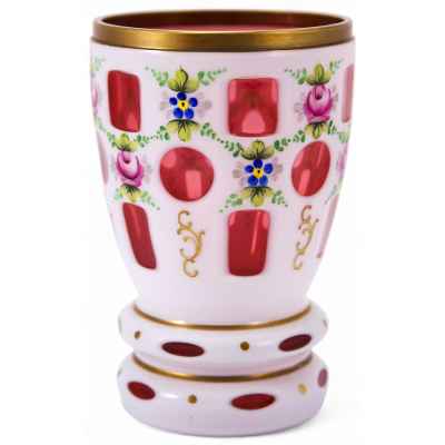Стакан «ранфбехер» с бордовыми цветами Богемия XX век