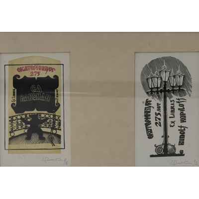 Планшет с двумя экслибрисами из книг С.А. Ваксмана и Р.В. Копылова СССР 1998