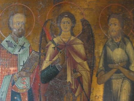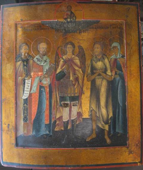 Архангел Михаил и избранные святые: преподобный Сергий Радонежский, Николай Чудотворец, Алексий, Человек Божий, Мученица Васса (01277)