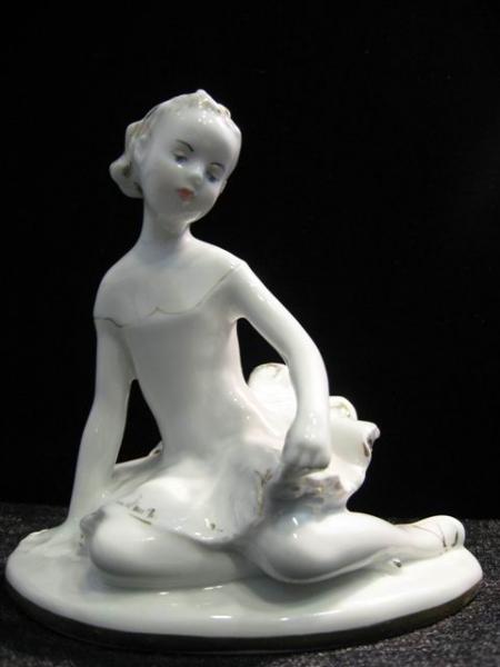 Скульптура Котенок фаянс, Европа ХХ в. Н-15 см. Европа XX век