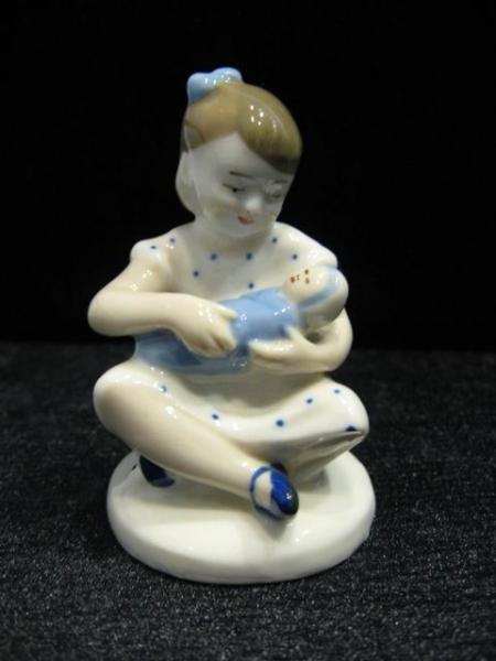 Скульптура Ребенок с волчком фарфор, Жолнаи (Zsolnay) Печ Венгрия сер. ХХ в. 15,5х12 см. Печ, Венгрия. 1970 гг