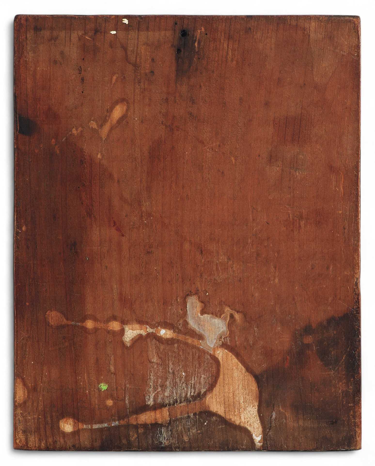 Живопись на иконе выполнена профессиональным московским иконописцем. Лик живописен, обладает мягкой моделировкой, легким плавным письмом. Золоченый фон украшенный лучами и живописные эмали создают праздничный ансамбль.