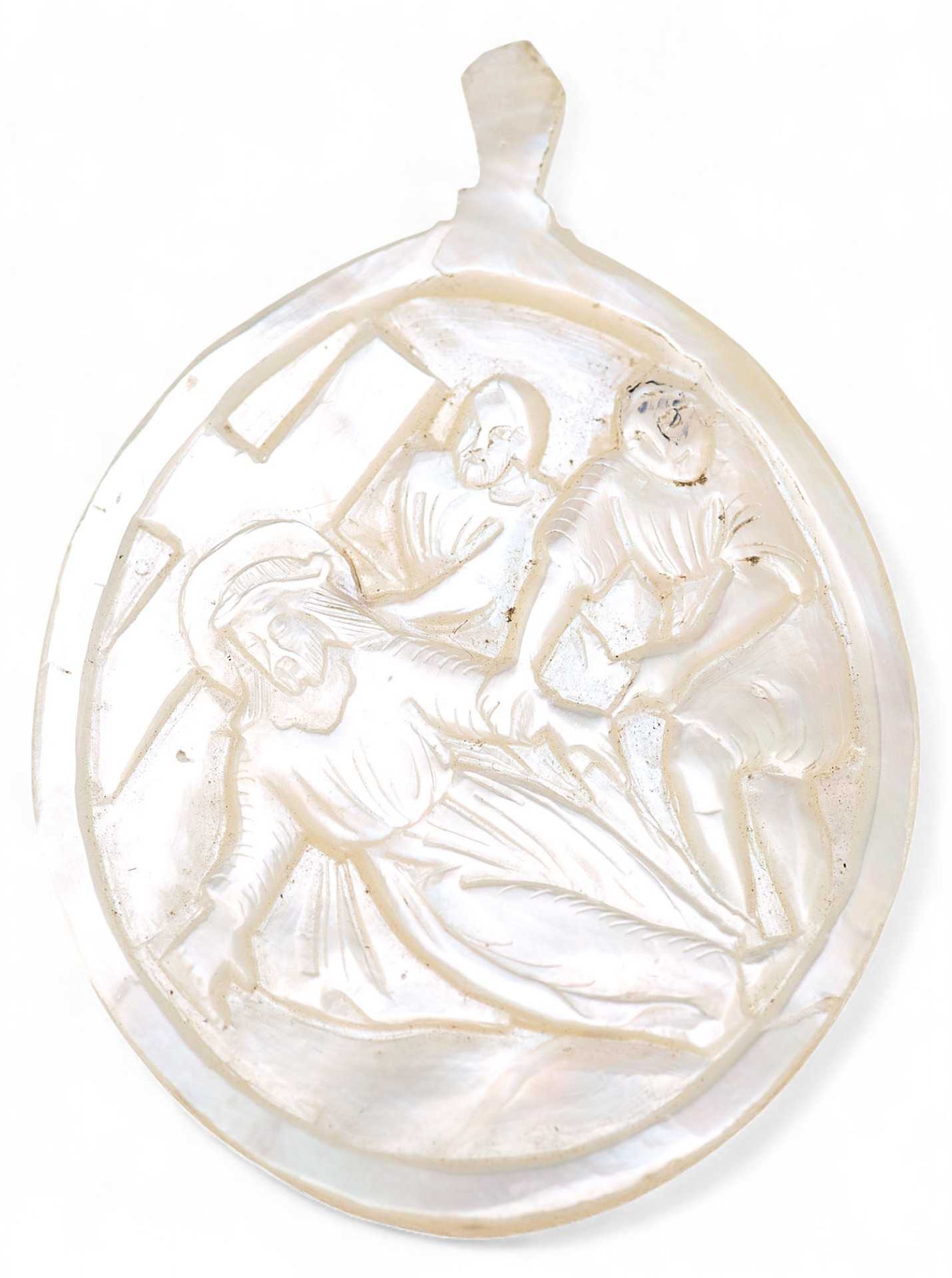 С конца ХѴПІ века паломники приносили в Россию со Святой земли перламутровые резные раковины-пластины с изображением евангельских сюжетов.