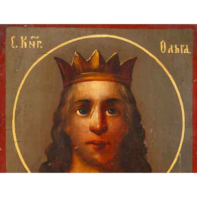 Княгиня Ольга, в крещении Елена (f 11 июля 969) — великая княгиня, правила Киевской Русью после гибели мужа, князя Игоря Рюриковича, как регент с 945 примерно до 960 года. Святая Русской православной церкви, первая из русских правителей приняла христианство ещё до Крещения Руси. В Православной Церкви считается предвестницей христианской веры на Руси. В 1547 княгиня Ольга причислена к лику святой равноапостольной.