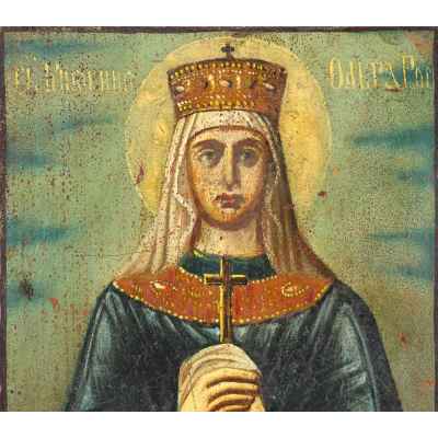 Ольга, равноапостольная великая княгиня. Супруга великого князя Игоря. После его кончины правила Русской землей по причине малолетства сына Святослава. С ее именем связано, прежде всего, духовное преображение русского народа. В 956 г., передав управление государством cынy, отправилась в Царьград. В Византии она крестилась с именем Елена. Возвратившись на родину, равноапостольная Ольга занималась распространением христианской веры среди своих подданных. Скончалась в 969 г. Память ее установлена 11(24) июля. Нет сомнений, что образ св. Ольги глубоко повлиял на ее внука - крестителя Руси князя Владимира.