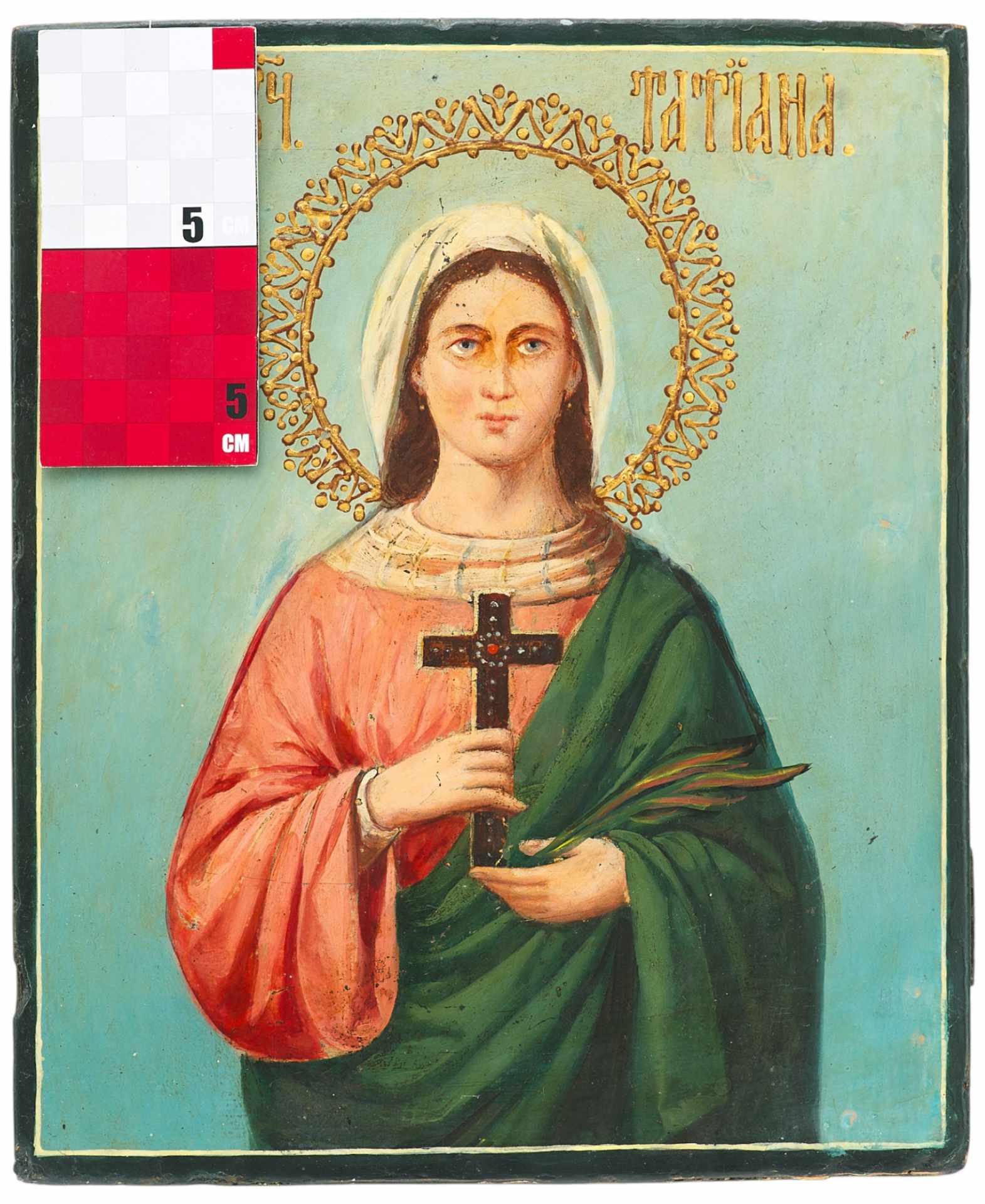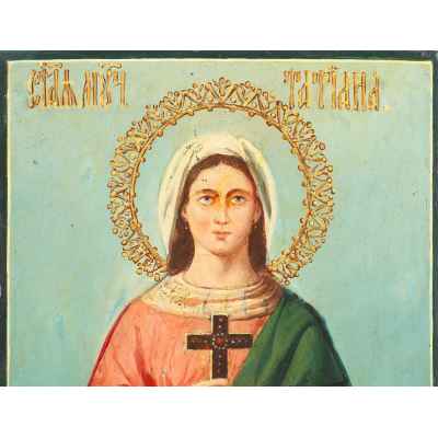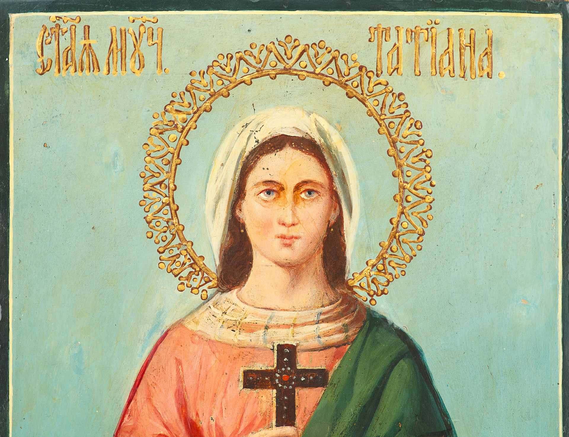 Святая Татьяна была дочерью богатого римлянина и была воспитана им в христианской вере. Когда Татьяна достигла совершеннолетия, она навсегда отказалась от супружеской жизни и за добродетельную жизнь была назначена диакониссой Римской церкви. В этой должности она с усердием ухаживала за больными, посещала темницы, помогала неимущим, стараясь постоянно угодить Богу молитвами и добрыми делами. При императоре Александре Севере (222-235 гг.) святая Татьяна за исповедание веры христовой приняла мученическое страдание от римского градоправителя Ульпиана (около 225 г.).