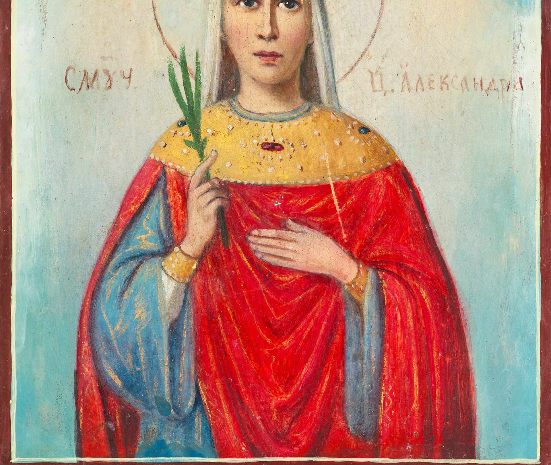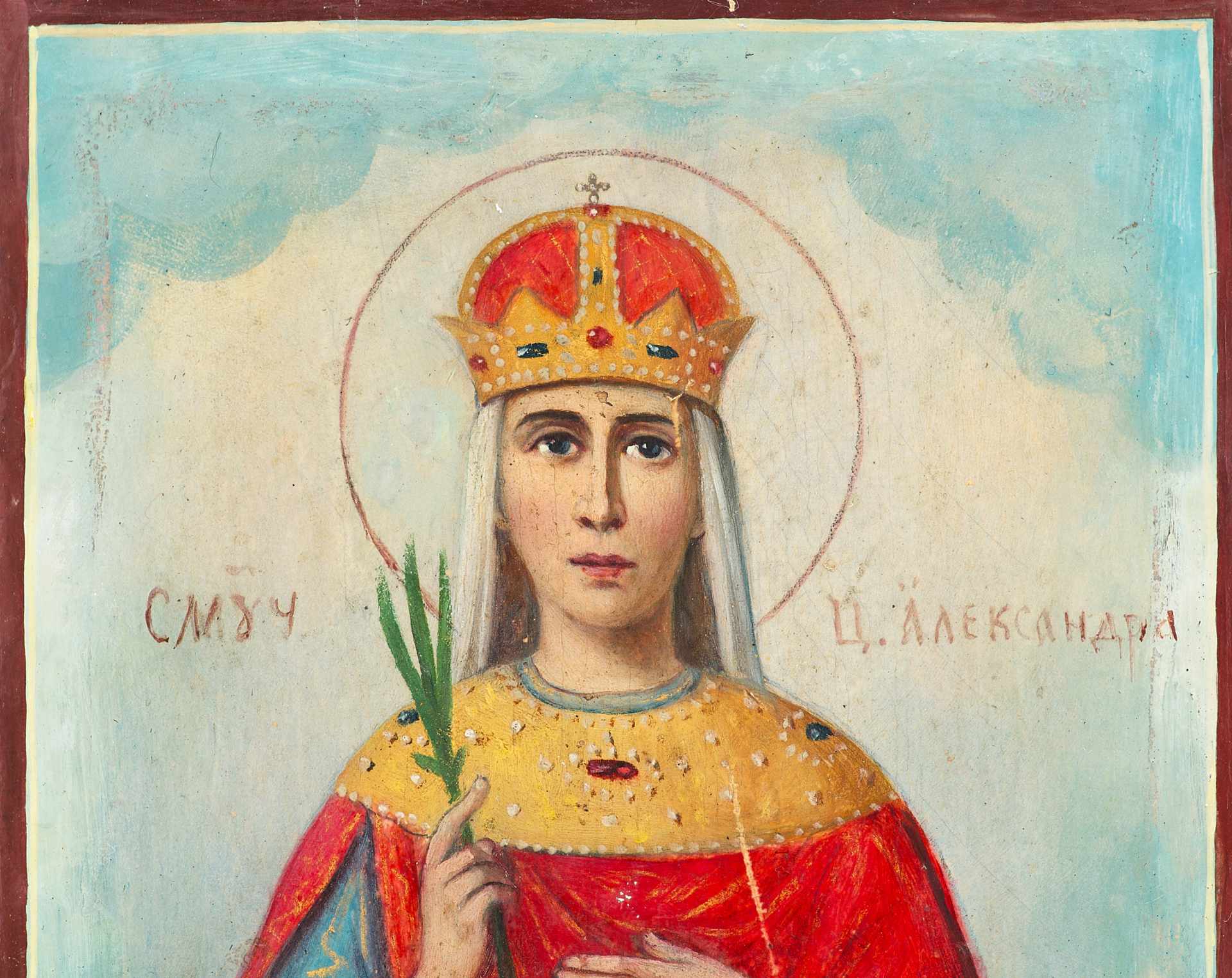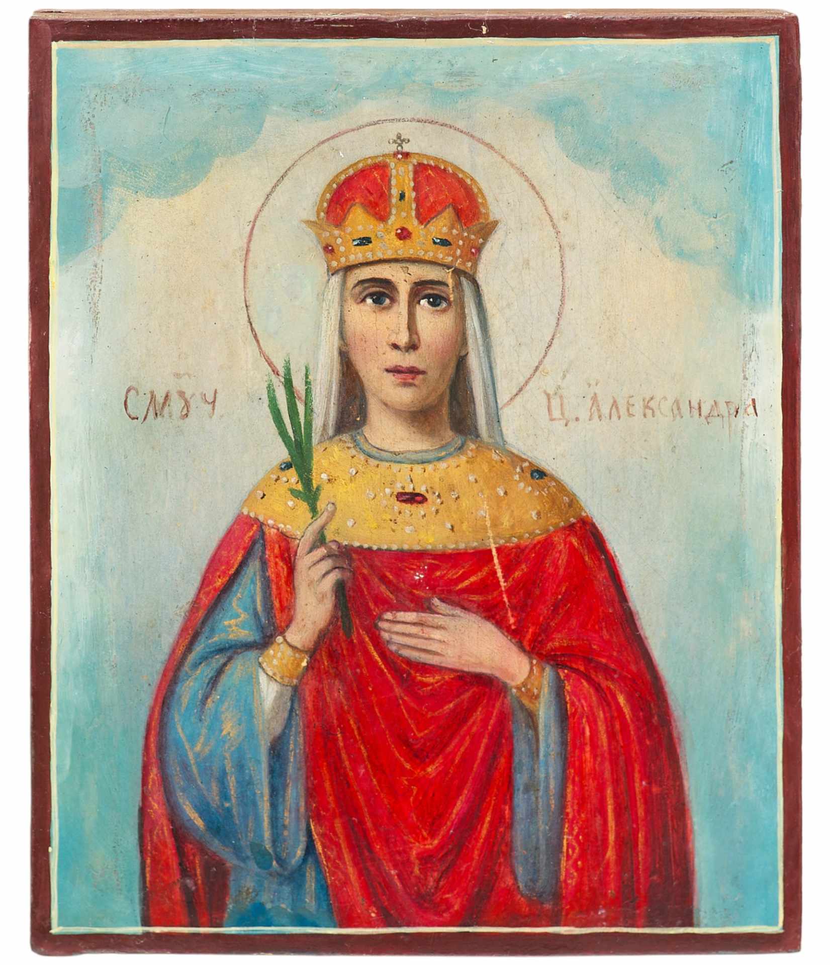 Александра - святая мученица, царица. Супруга царя Диоклетиана, уверовала во Иисуса Христа, видя твердость