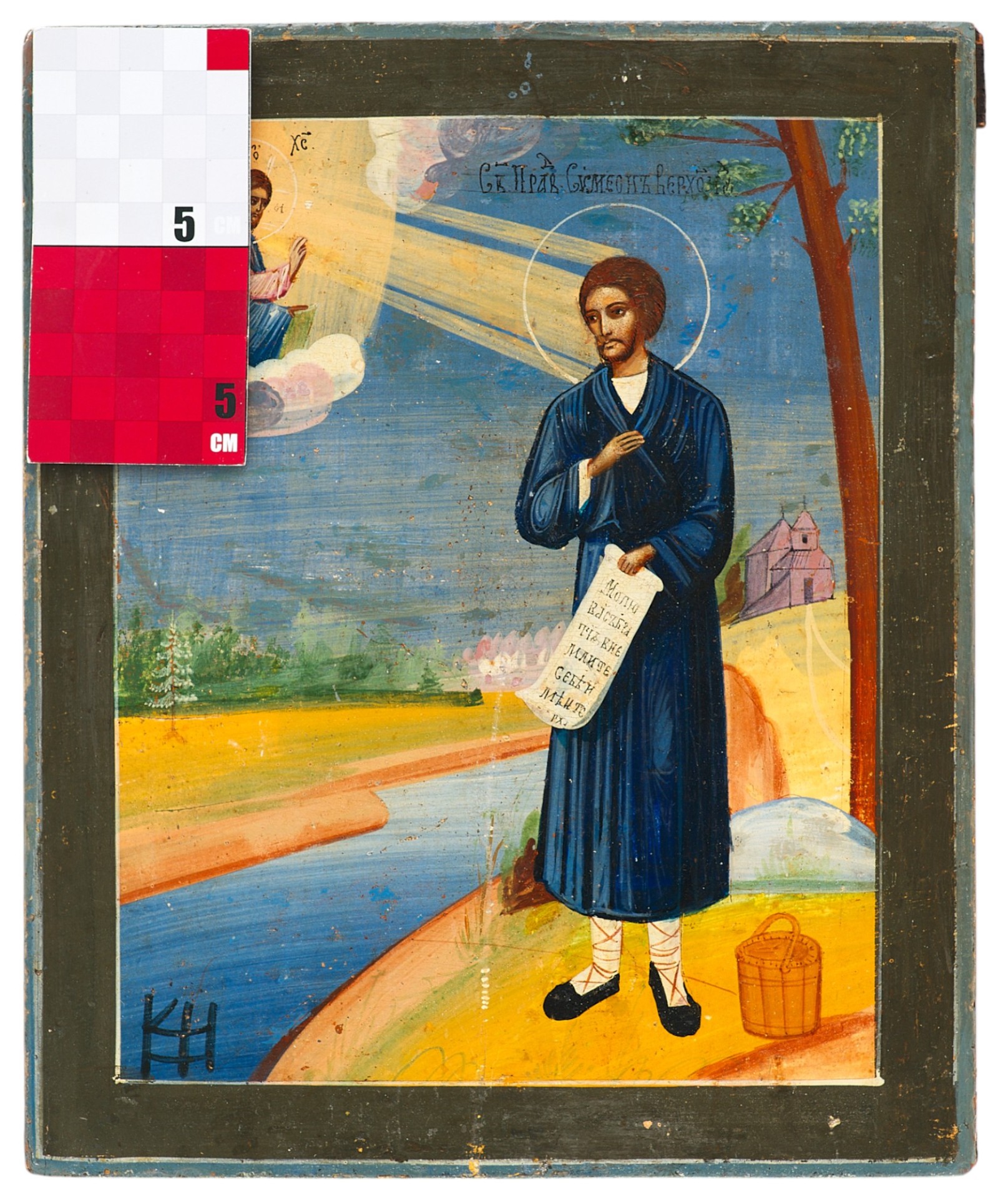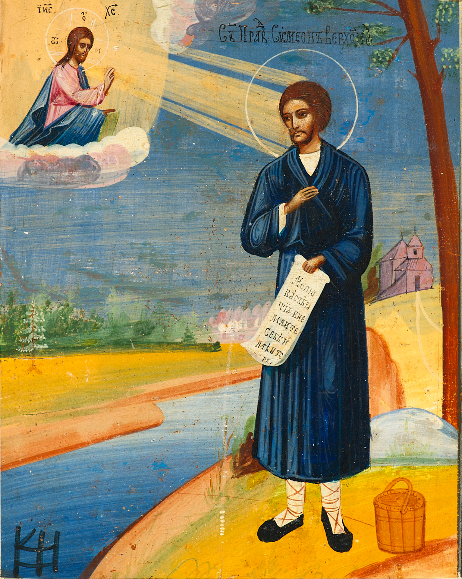 Симеон Верхотурский, праведный. Происходил из дворян. Удалился в Сибирь и как странник не имел пристанища. Жил на погосте в с. Меркушинском, в 50 верстах от г. Верхотурья Пермской губернии. Скончался в XVII в. Память его совершается 12(25) сентября и 18(31) декабря. Мощи обретены в 1692 г. и перенесены в Николаевский монастырь в 1702 г. Верхотурский Свято-Николаевский мужской монастырь, один из первых в Зауралье, основан в царствование царя и великого князя Бориса Федоровича Годунова в 1604 г. Основателем монастыря был инок Иона. Монастырь строили “мирского дачею” и поэтому строения его все поначалу были бедные и деревянные. Оживление монастыря началось в 1702 году, когда из с. Меркушино перенесли мощи Святого Преподобного Симеона, чудотворца Верхотурского.