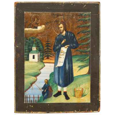 Симеон Верхотурский, праведный. Происходил из дворян. Удалился в Сибирь и как странник не имел пристанища. Жил на погосте в с. Меркушинском, в 50 верстах от г. Верхотурья Пермской губернии. Скончался в XVII в. Память его совершается 12(25) сентября и 18(31) декабря. Мощи обретены в 1692 г. и перенесены в Николаевский монастырь в 1702 г. Верхотурский Свято-Николаевский мужской монастырь, один из первых в Зауралье, основан в царствование царя и великого князя Бориса Федоровича Годунова в 1604 г. Основателем монастыря был инок Иона. Монастырь строили “мирского дачею” и поэтому строения его все поначалу были бедные и деревянные. Оживление монастыря началось в 1702 году, когда из с. Меркушино перенесли мощи Святого Преподобного Симеона, чудотворца Верхотурского.