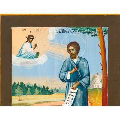 Икона Святой праведный Симеон Верхотурский Урал темпера кон. XIX в. 17,8x14 см. Урал Конец XIX века