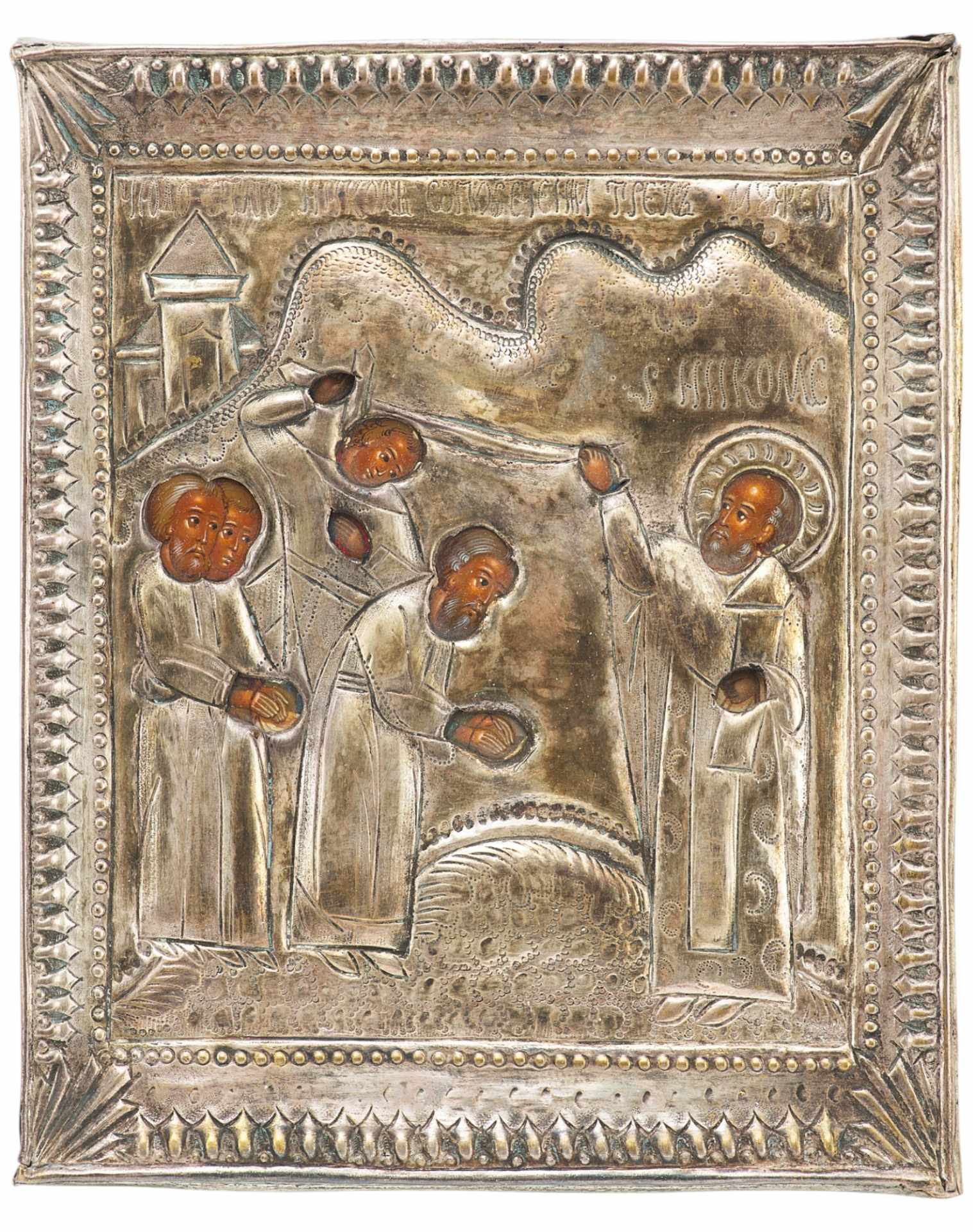 Икона в окладе «Святой Николай избави трех мужей от меча» Вторая половина XIX века