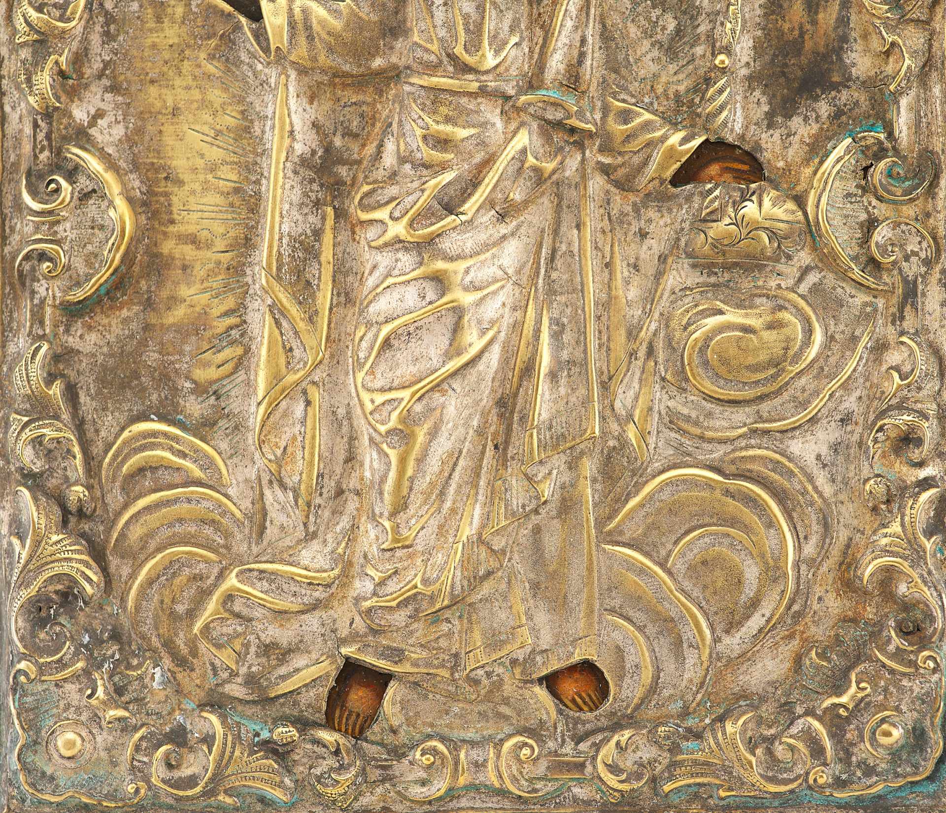 образцам. Икона написана в духе барочной живописи, но сохраняет традиционную сдержанность в передаче поз и жестов.