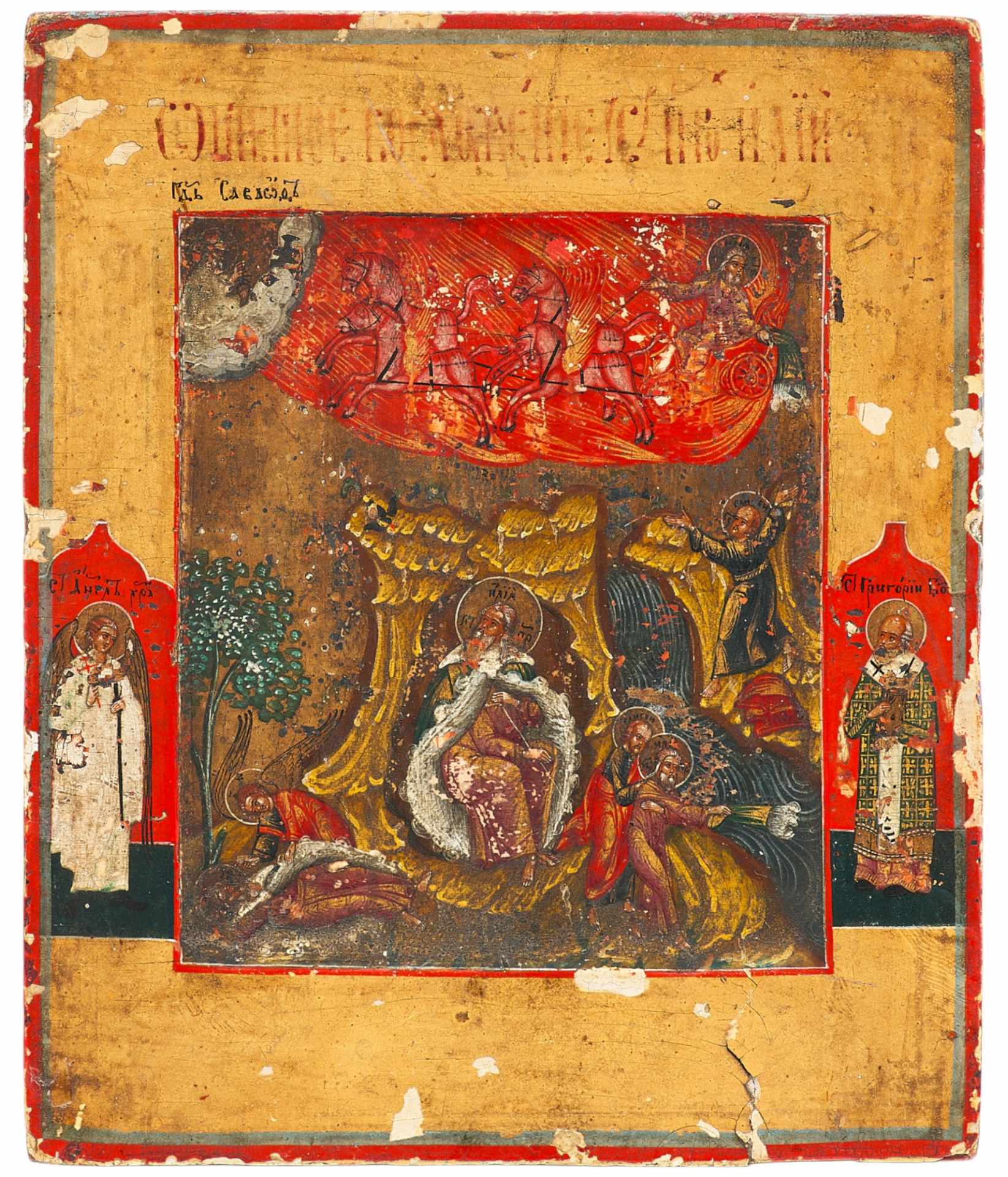 Икона Огненное восхождение Ильи-пророка Невьянск Первая четверть XIX века