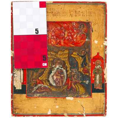 Икона Огненное восхождение Ильи-пророка - типичное произведение невьянских иконописных мастерских первой четверти XIX века. При ее создании использована яичная темпера.