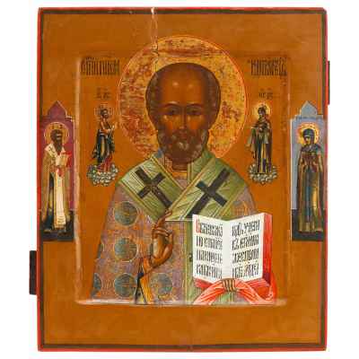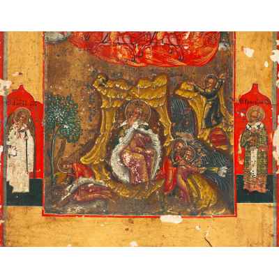 На полях иконы изображены избранные святые — Ангел хранитель и Григорий Богослов.