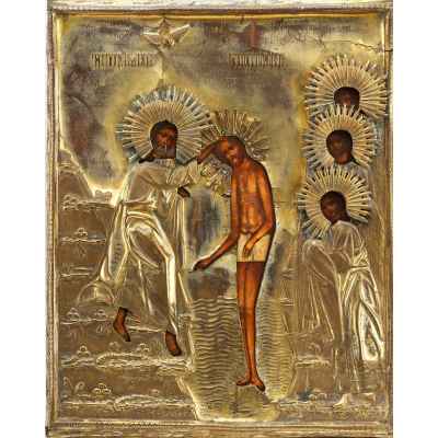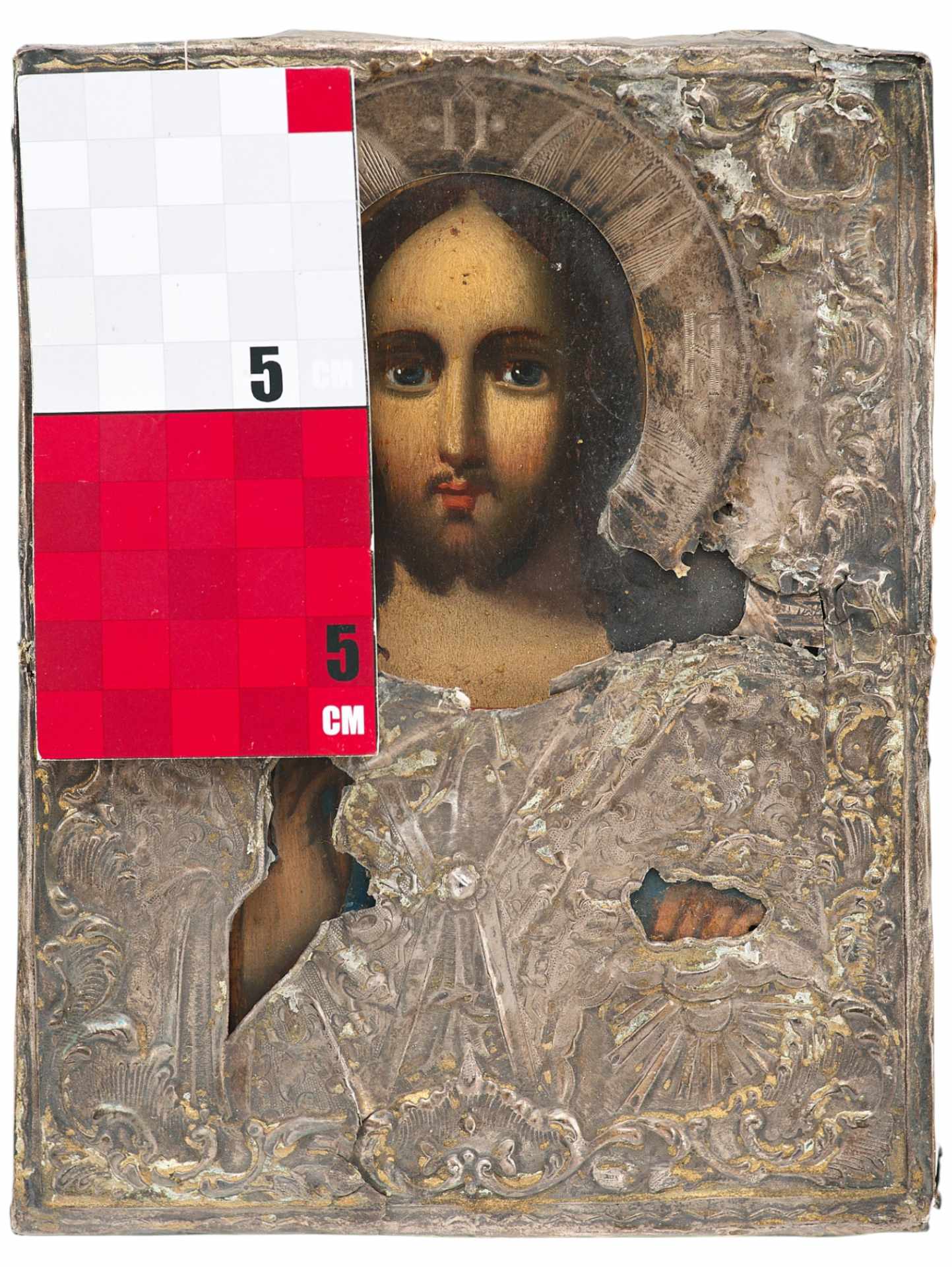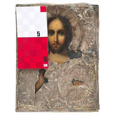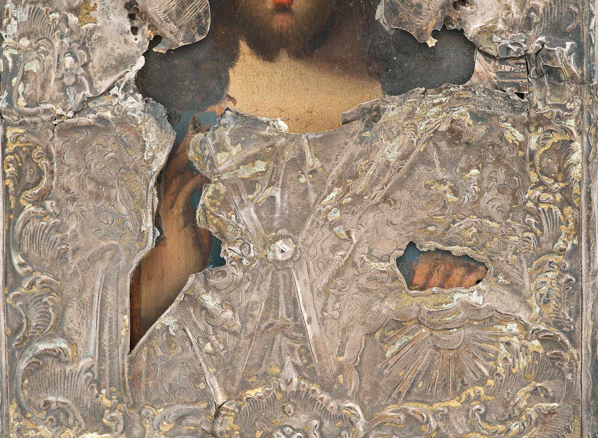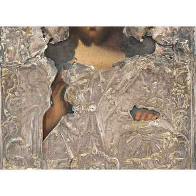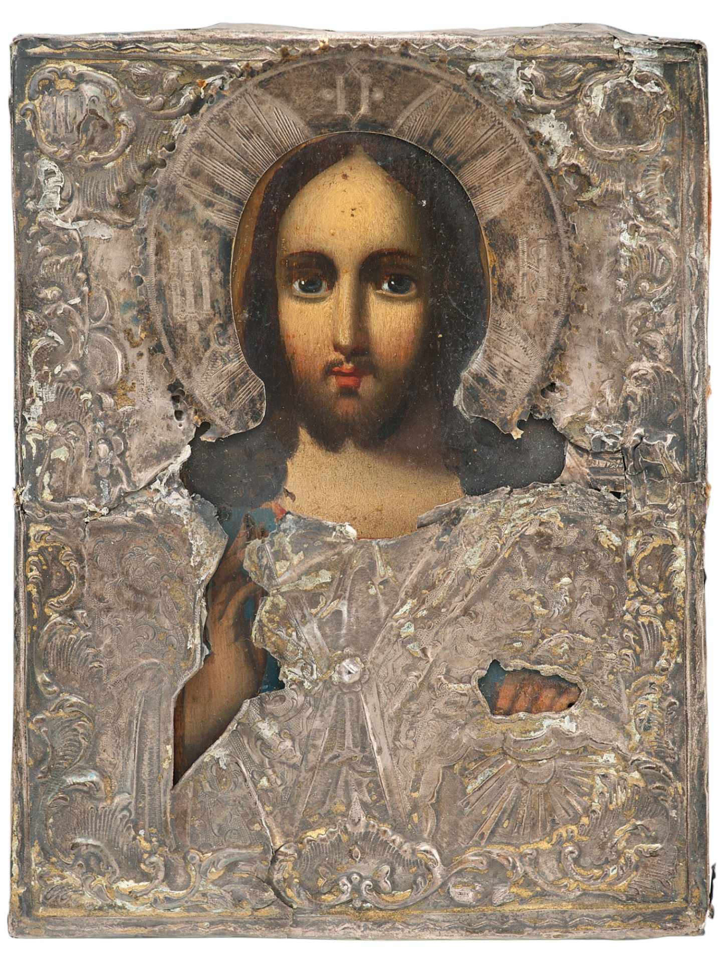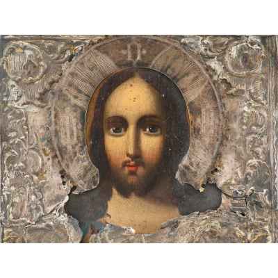 Икона в серебряном окладе Спас Вседержитель 84 пр. СПБ 1852 г. 17,3x13,5 см. Санкт- Петербург около 1852 г