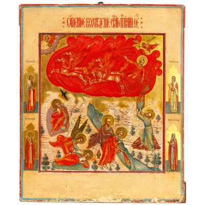 На боковых полях изображены Антипа, Варвара, Симон, Анисия. Судя по изображениям этих святых, вероятно, соименных членам семьи заказчика, икона была написана на заказ.