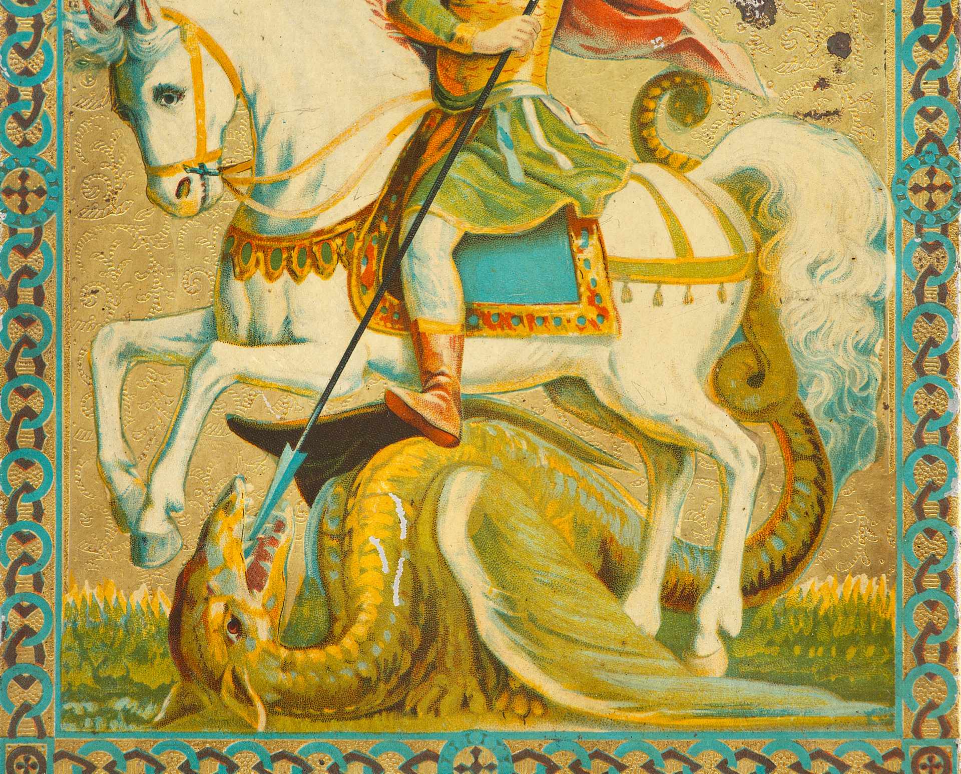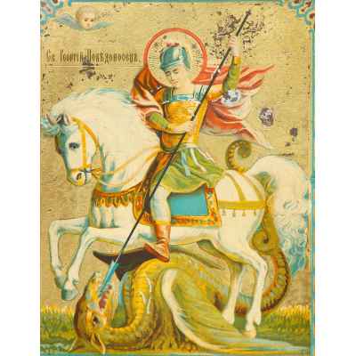 Среди всех изображений великомученика Георгия, пожалуй, самым популярным на Руси было изображение Чуда Георгия о змие. Оно основано на предании о том, что недалеко о того места, где был похоронен Георгий, около города Бейрута, жил