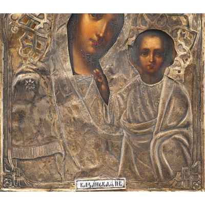 Икона в окладе и киоте: Богоматерь Казанская. Москва около 1859 г
