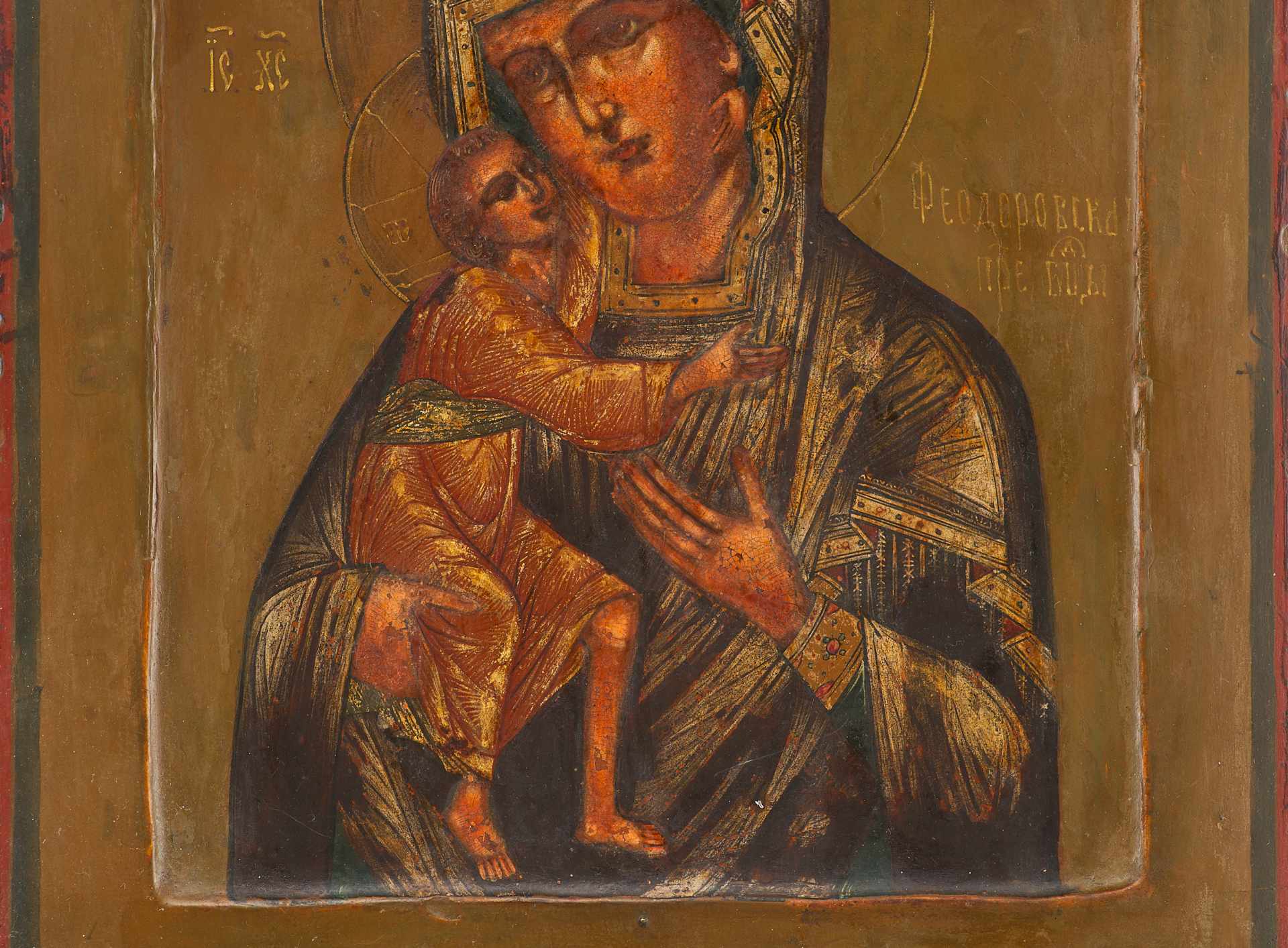 Икона Богоматерь Федоровская известна с 1164 г., она находилась в монастыре близ г. Городца Нижегородской епархии. С 1239 г. - в Новом Успенском соборе г. Костромы. Икона называется Федоровской. Потому что в Городецкой обители была церковь великомученика Федора Стратилата, а в Костроме до постройки Успенского храма помещалась в прежнем соборном
