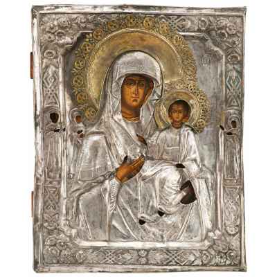 На иконе представлена Богоматерь с младенцем Христом. Младенец держит развернутый свиток. Этот образ глубоко чтится верующими и дарит больным исцеление и скорбящим утешение. Чудотворная икона Богоматери «Утоли моя печали...» появилась в Москве в церкви святителя Николая Чудотворца в 1640г. Чудес, прославивших икону, безчисленное множество. С иконы делали списки «в меру и подобие». Именно таким списком является экспертируемая икона.