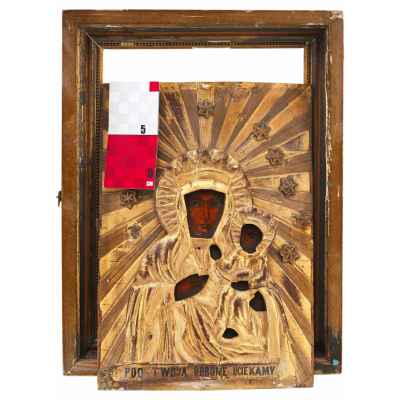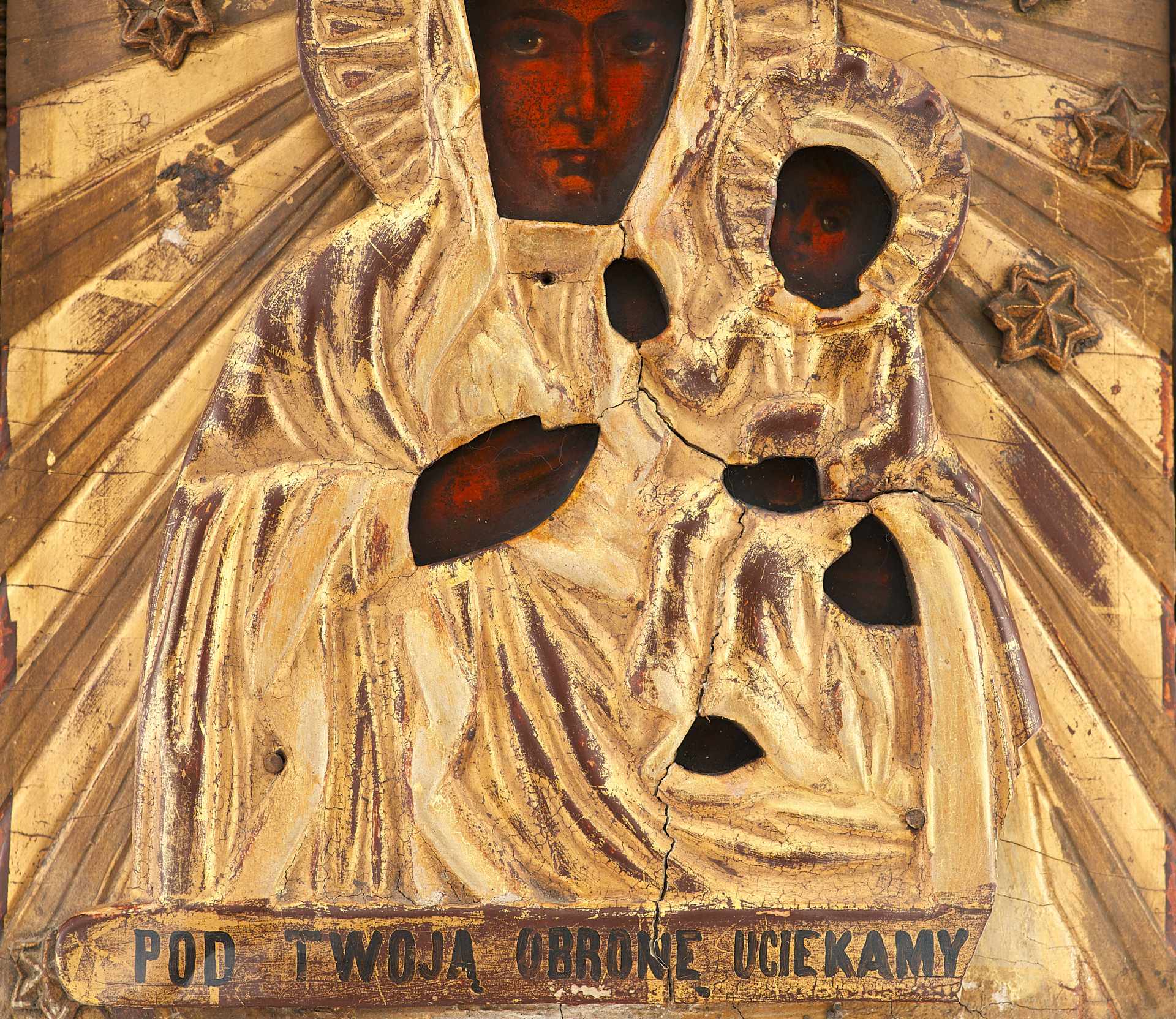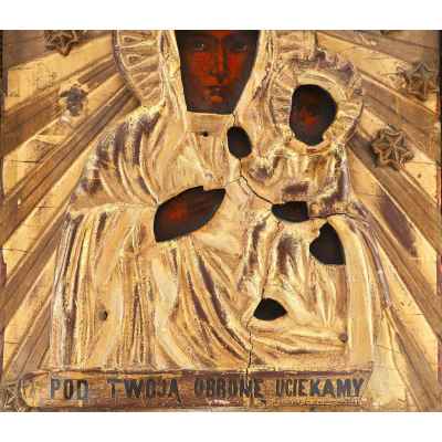 Ниже, под изображением Богоматери первая строка одной из наиболее известных польских молитв: POD TWOJA OBRONE