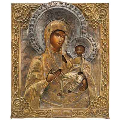 Икона Богоматерь Знамение масло кон. XIX в. 22,2x17,3 см. Конец XIX века