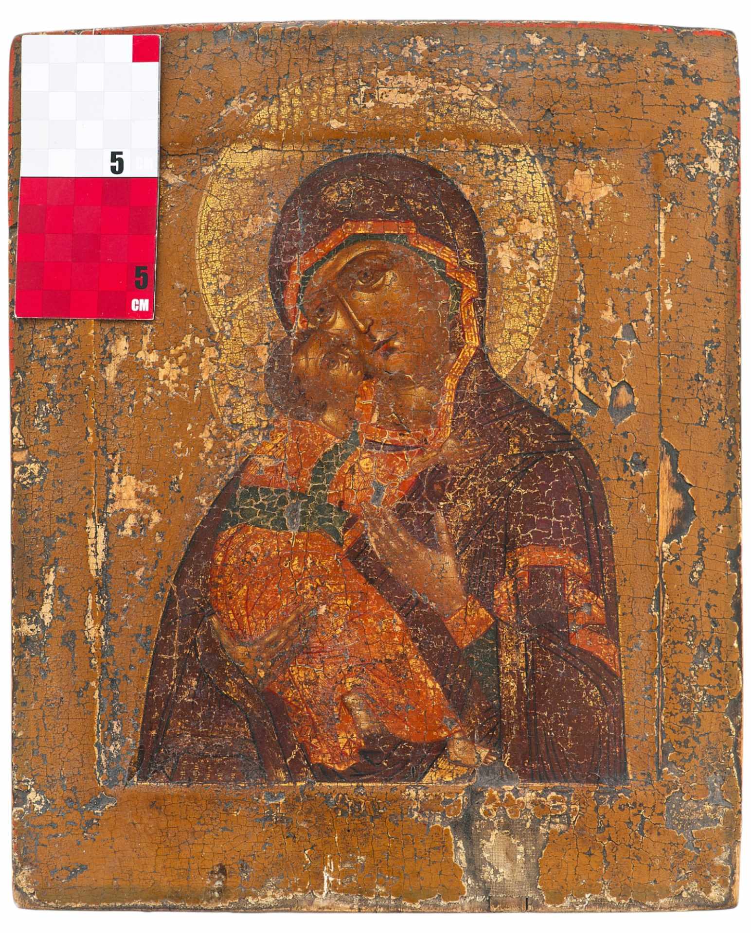 Для «Богоматери Владимирской» характерно помещение Христоса на правой руке Пресвятой Девы. Он обнимает богоматерь за шею так, что видны пальцы его левой руки. В этой иконе иконография чудотворной «Владимирской» передана точно. Образное решение иконы восходит к Московским спискам XVI века с древней византийской иконы.