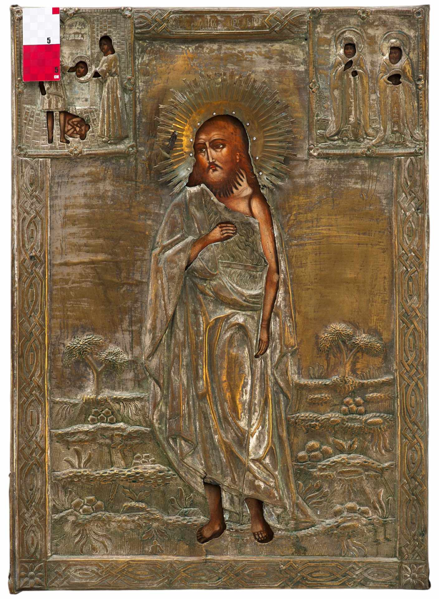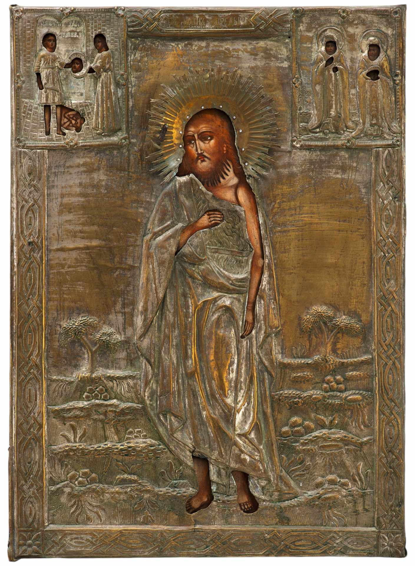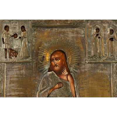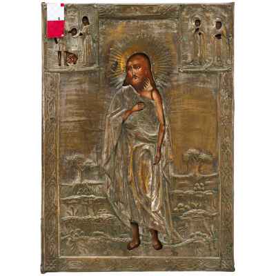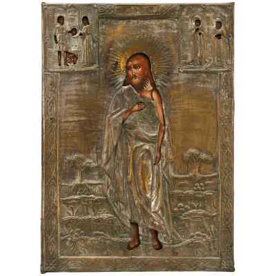 Храмовая икона в окладе Святой Иоанн Предтеча масло латунь втор. пол. XIX в. 79,5x57 см. Вторая половина XIX века