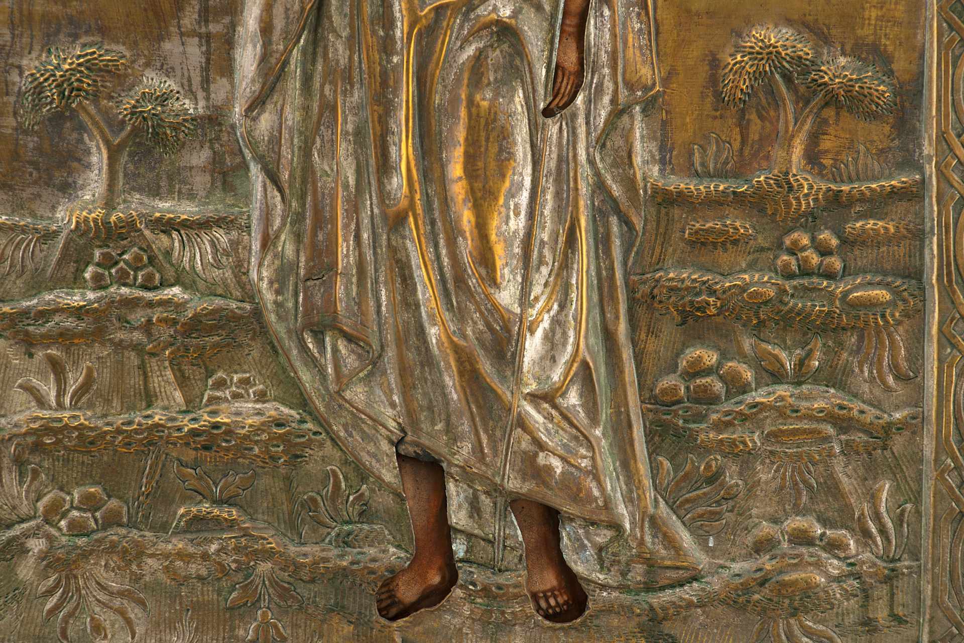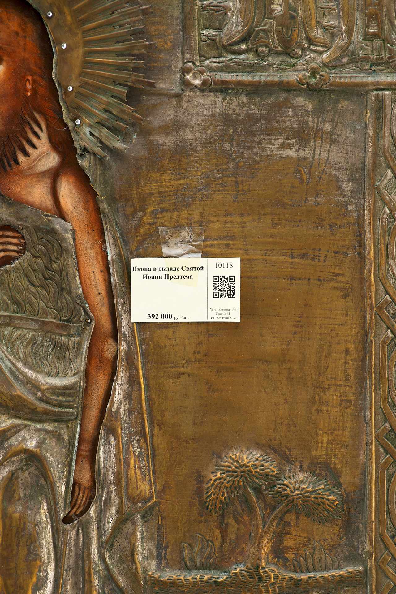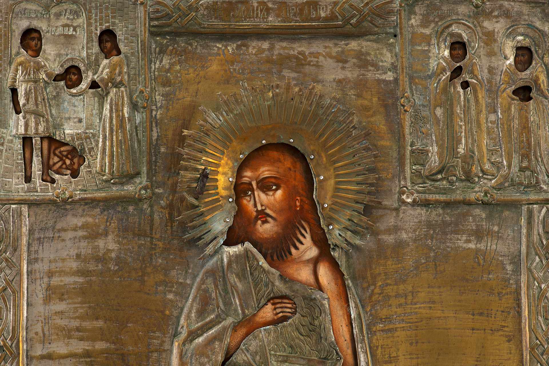 Храмовая икона в окладе Святой Иоанн Предтеча масло латунь втор. пол. XIX в. 79,5x57 см. Вторая половина XIX века