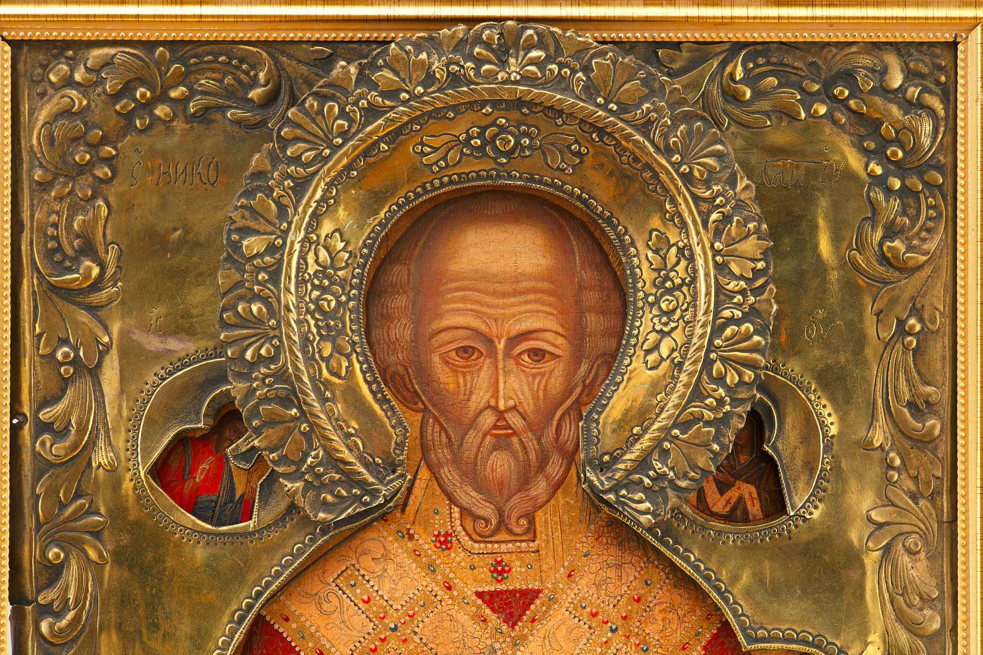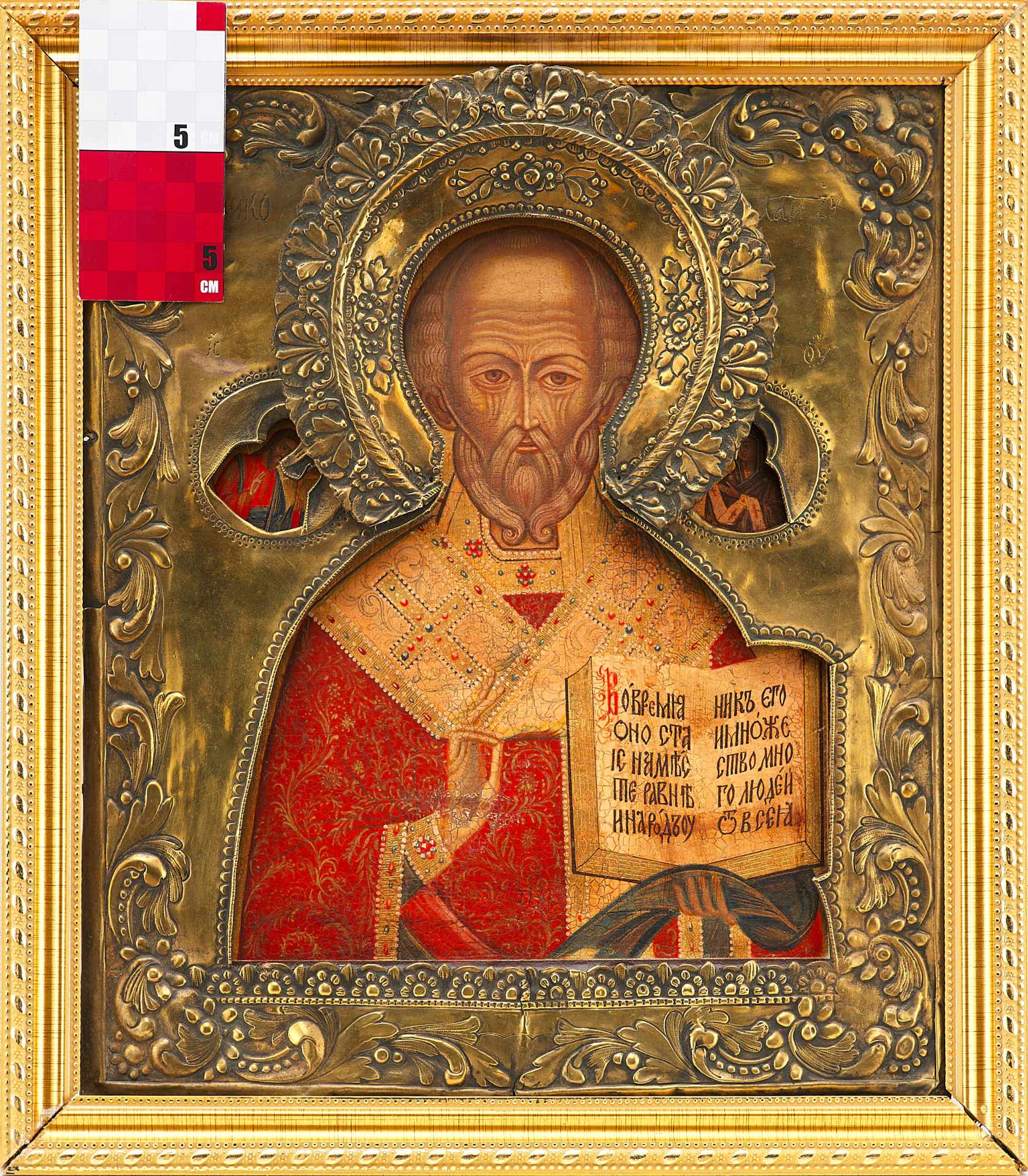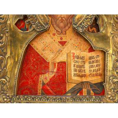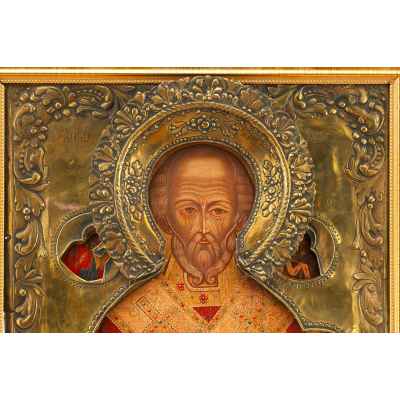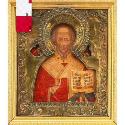 Икона в окладе Святитель Николай Чудотворец жив. ХХ в. 36x31,5 см. конец XX века