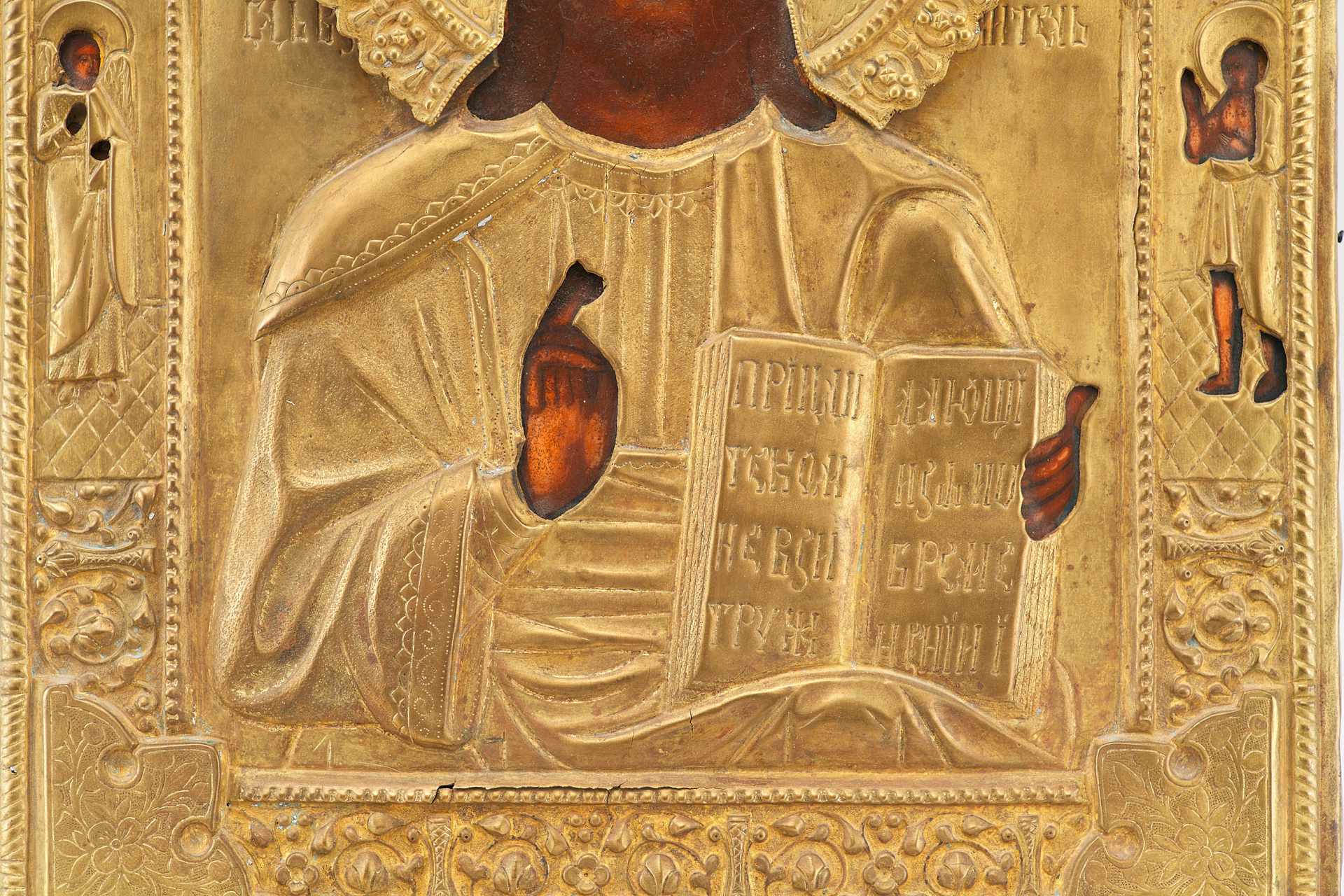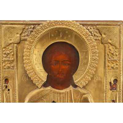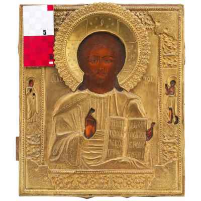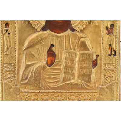Икона в окладе Господь Вседержитель темпера, латунь втор. пол. XIX в. 31x27 см. Последняя треть XIX века