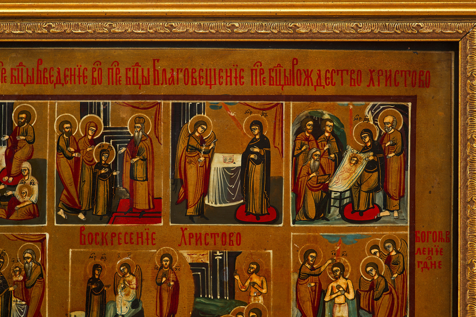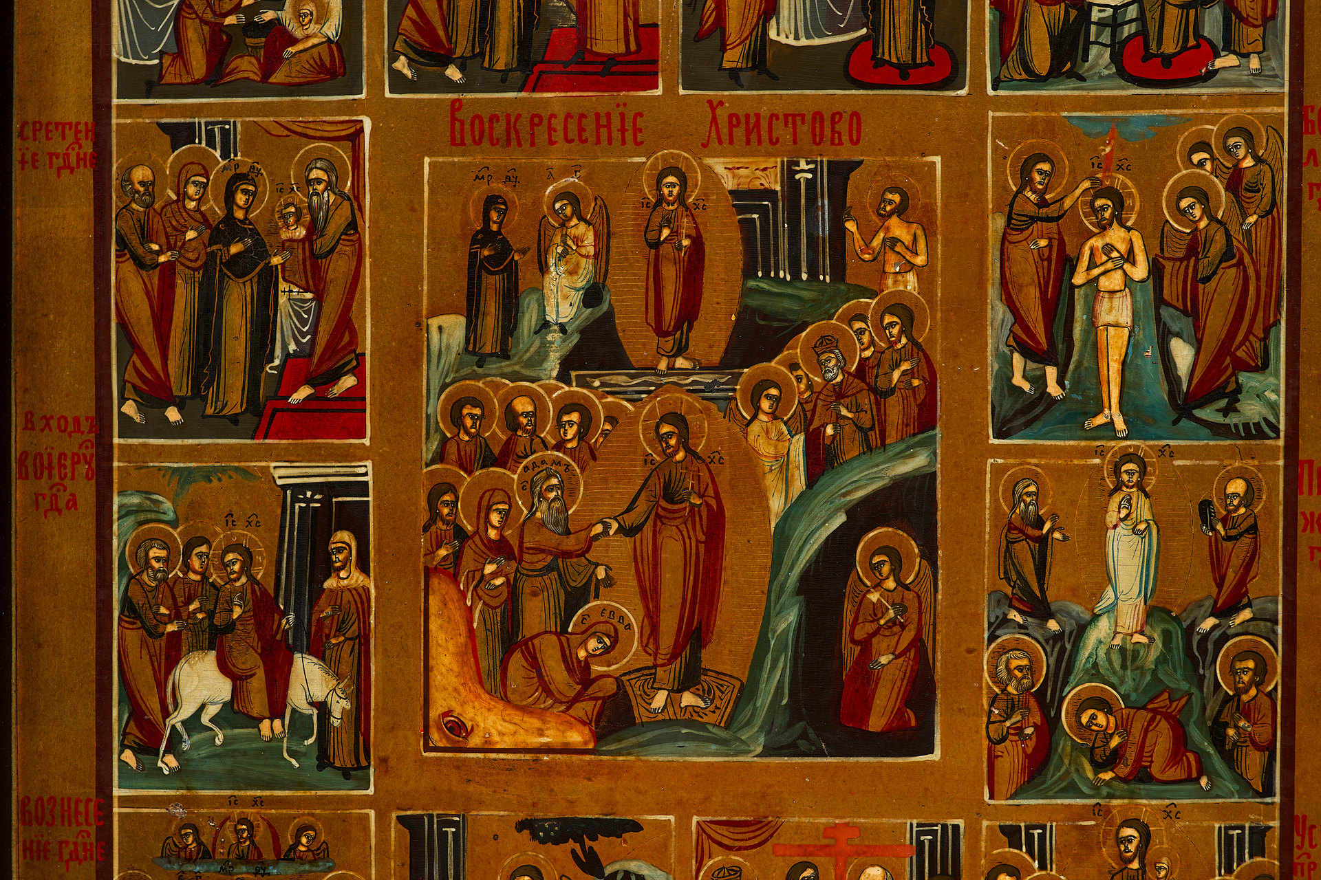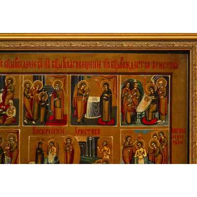 Икона Воскресение Христово с двунадесятыми праздниками. Конец XIX века