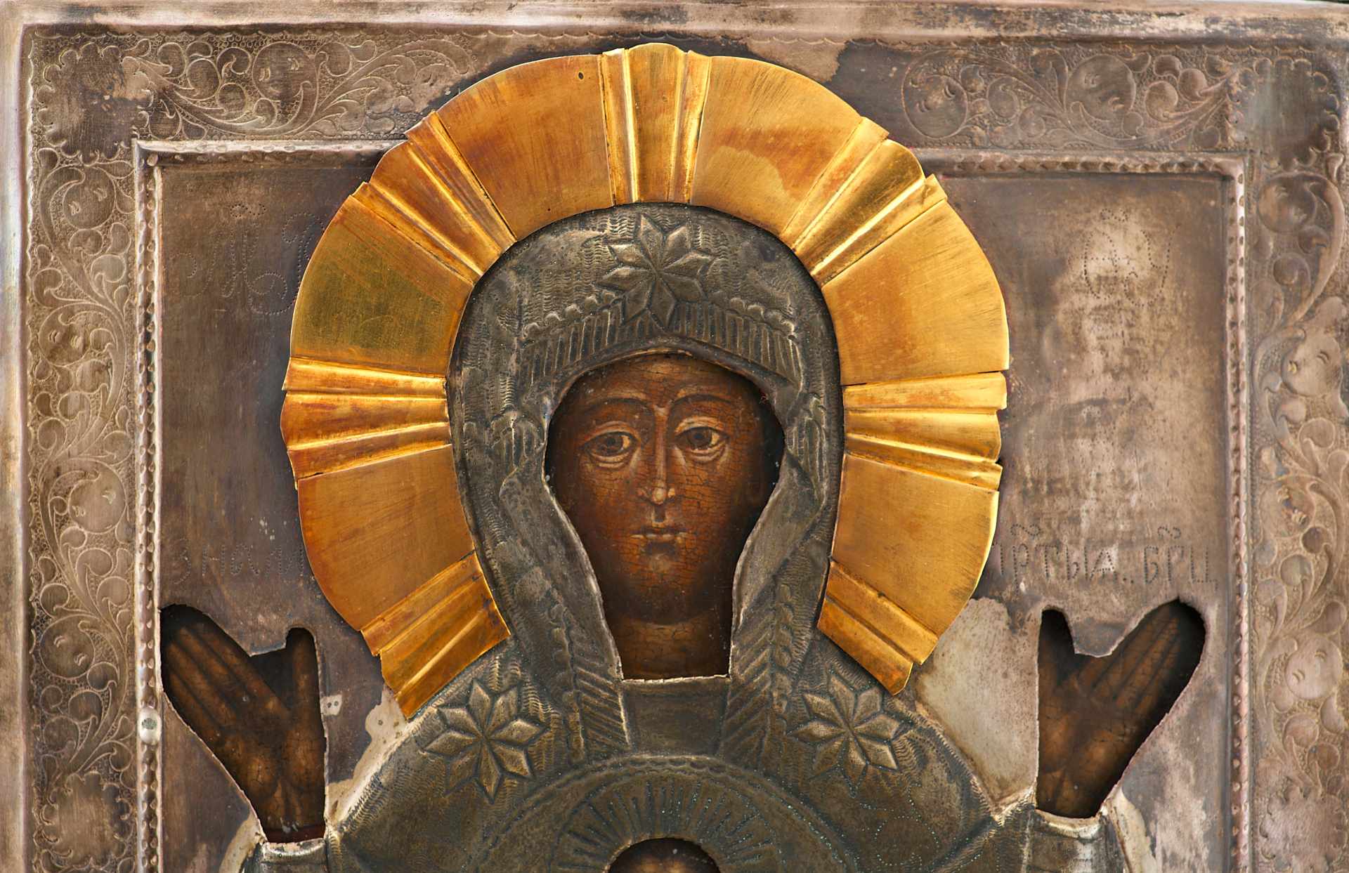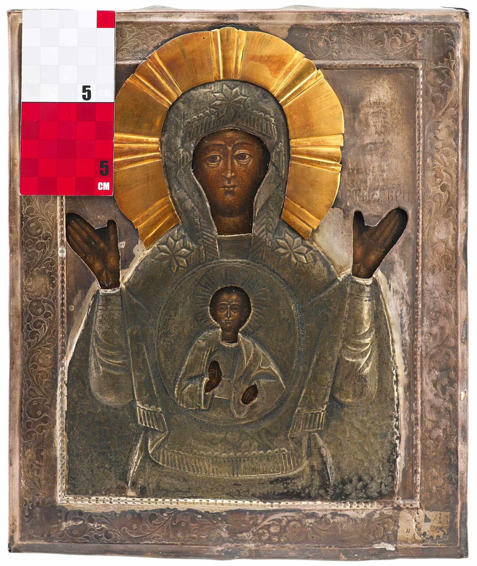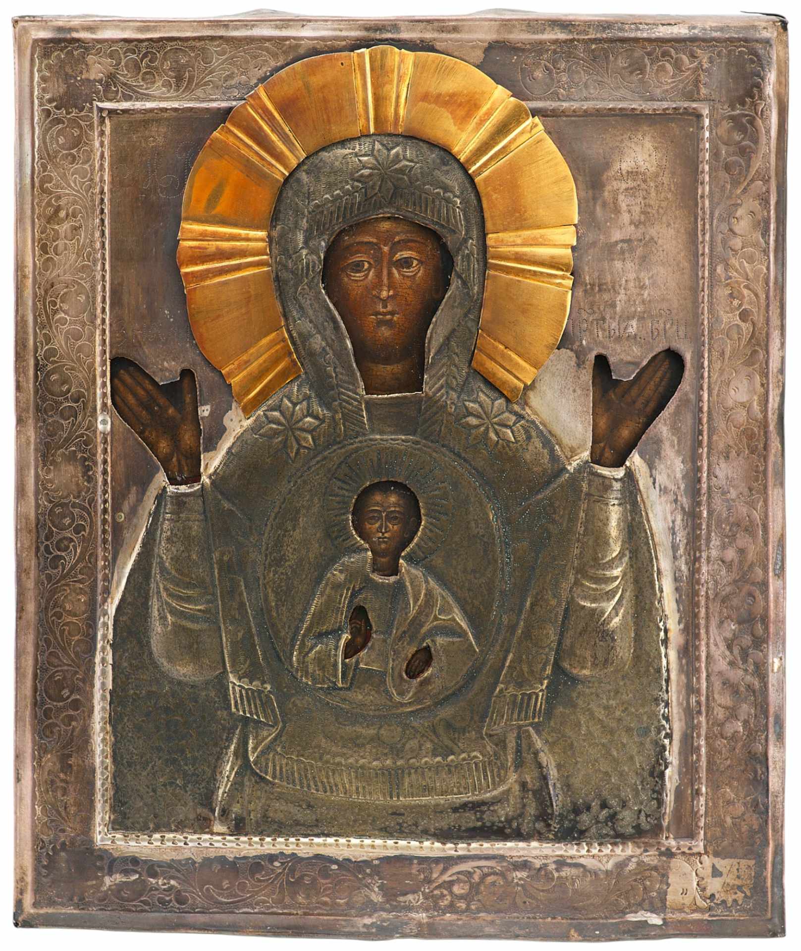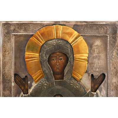 Икона в окладе Богоматерь Знамение сер. XIX в. 29,6x25,2 см. конец XIX в