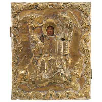 По своим художественным признакам икона в окладе относится к продукции иконописных мастерских конца XIX века.