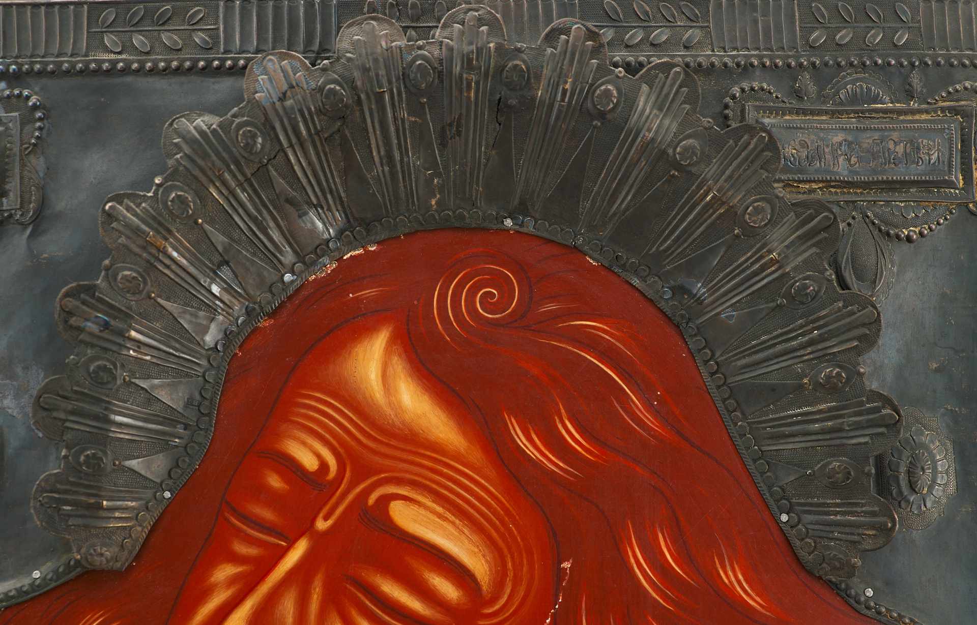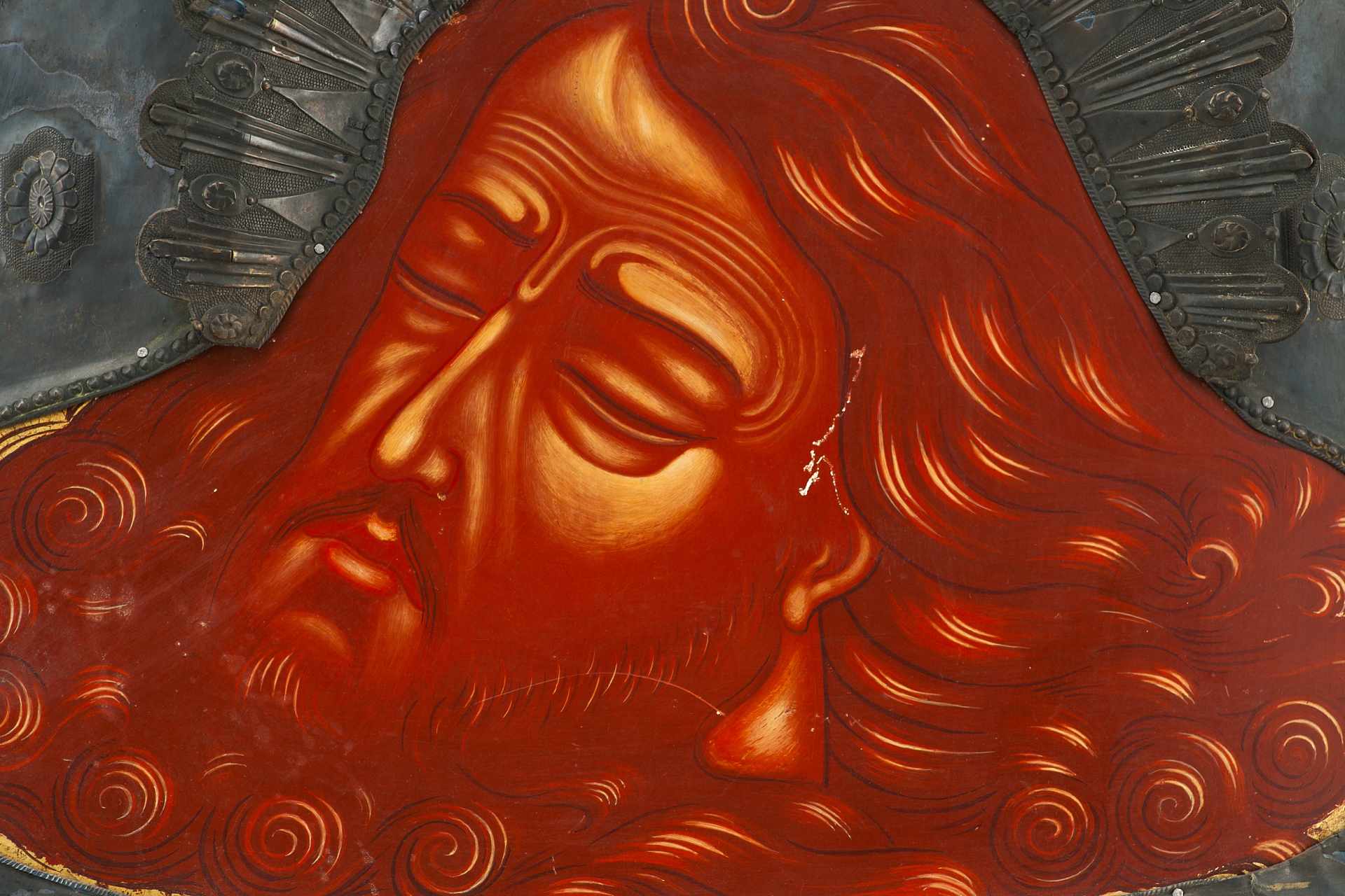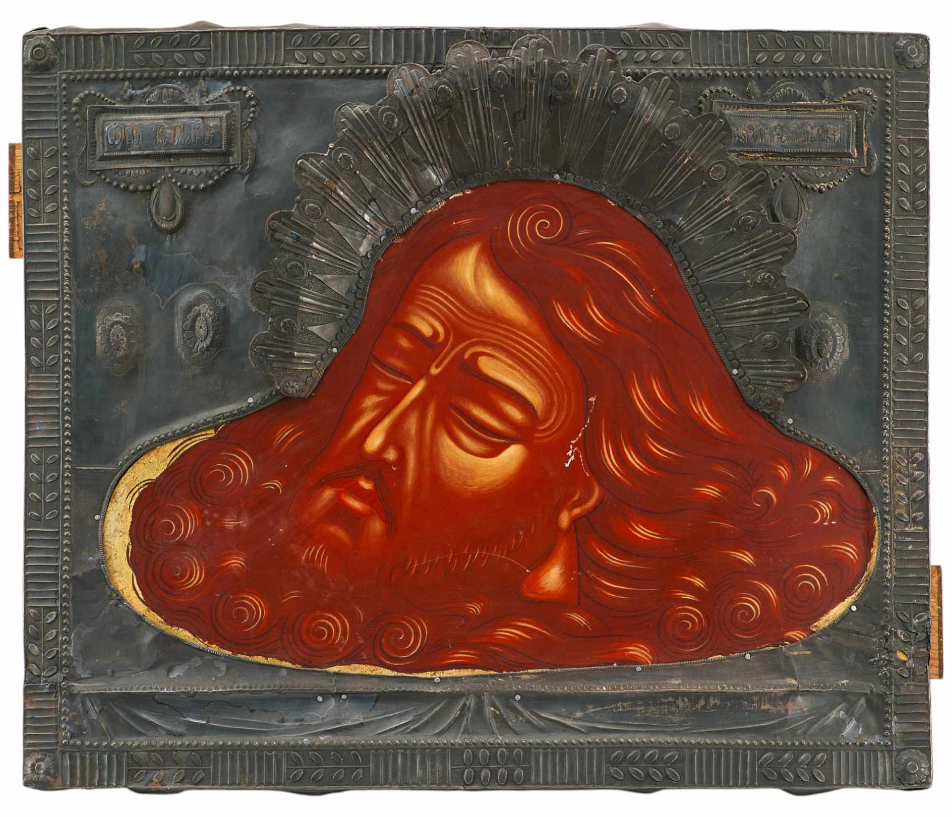 Икона в серебряном окладе Глава Иоанна Предтечи 84 пр. 1815 г. 39,5x47,5 см. Москва XX век