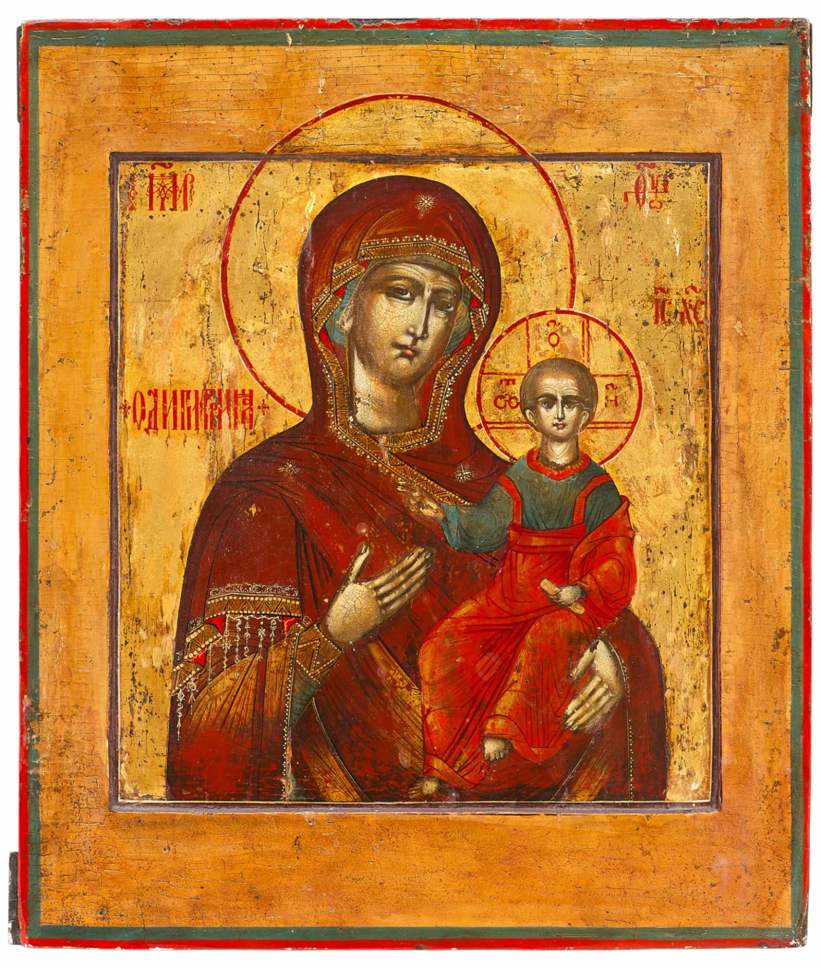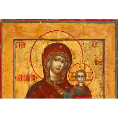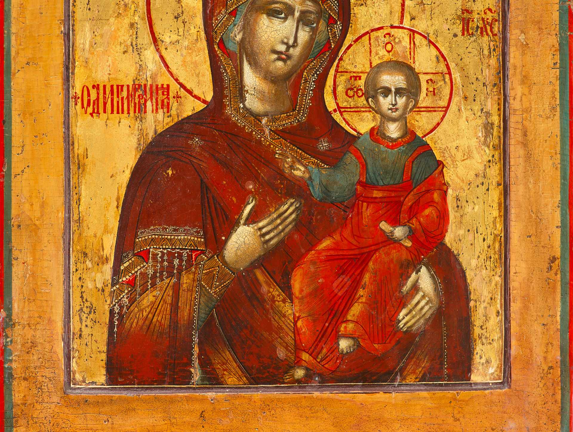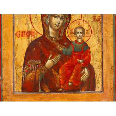 Одигитрия повторяет знаменитый чудотворный образ Богоматери, хранившийся в константинопольском монастыре