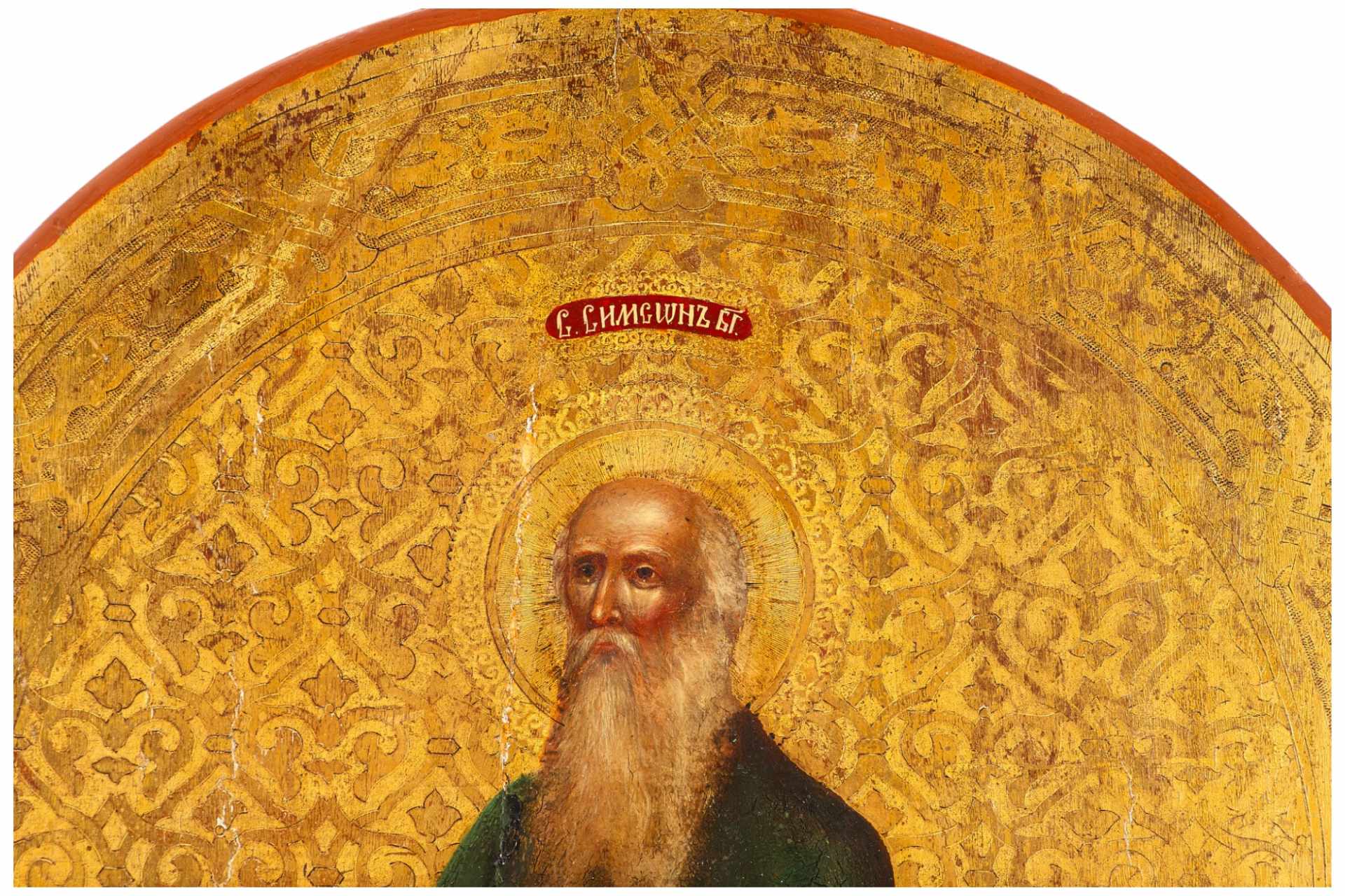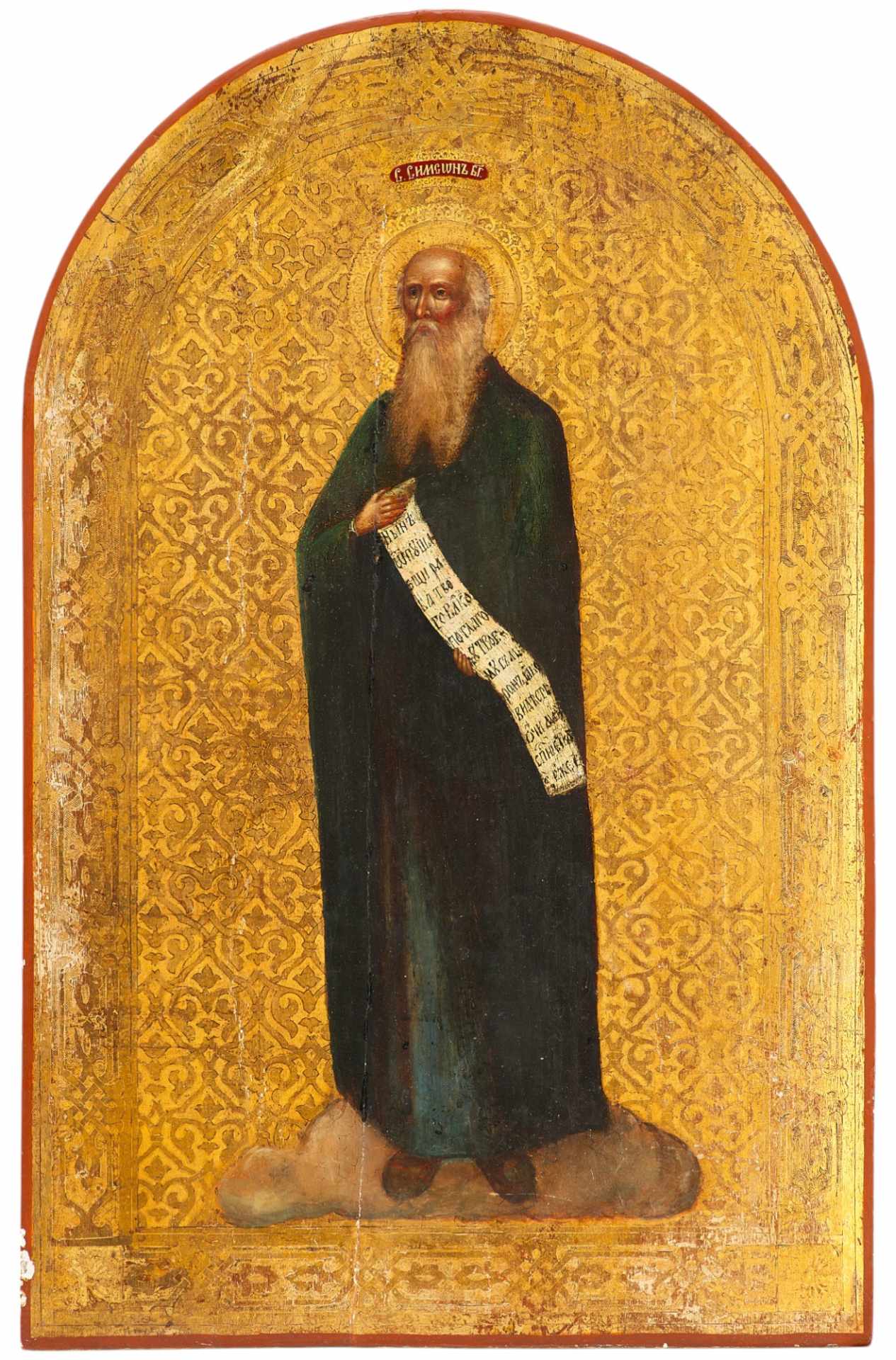 Храмовая икона Праведный Симеон Богоприимец по золоту сер. XIX в. 75,3 x 48,3 см. четверть XIX века