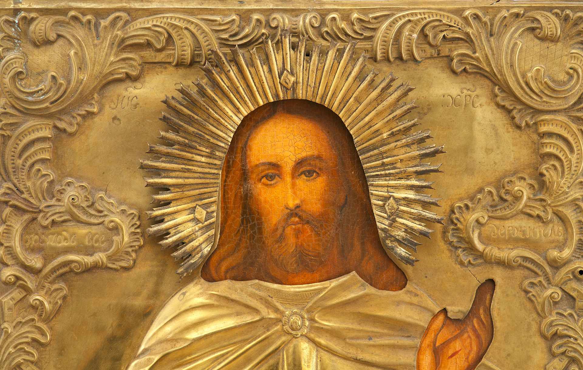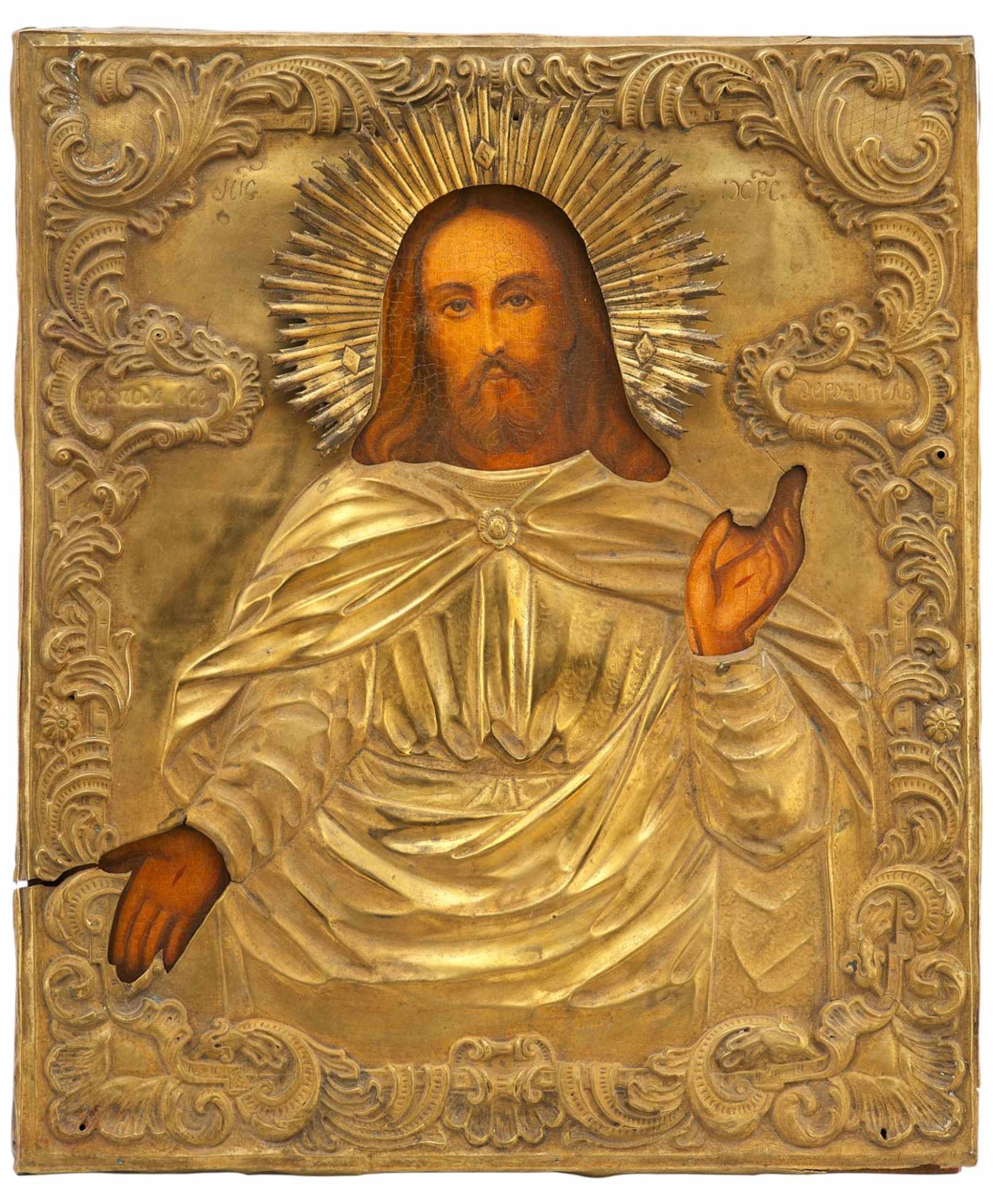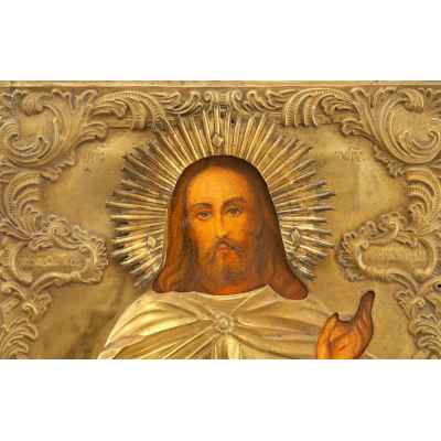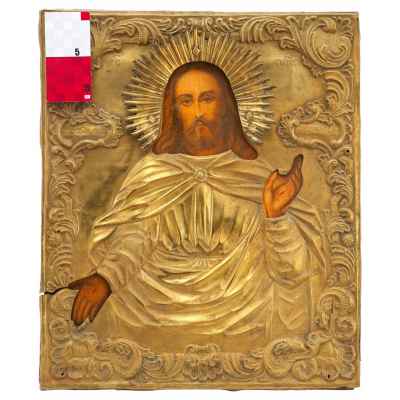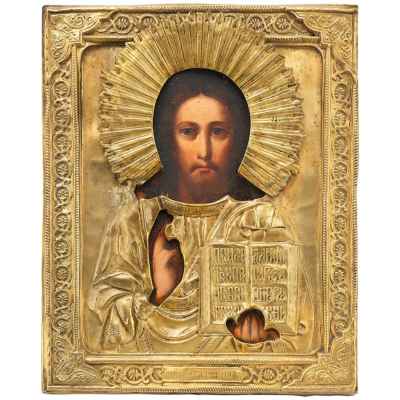 Икона в окладе Спас Вседержитель оклад XIX в. живопись ХХ в. 42,3 x 35,5 см. конец XX века