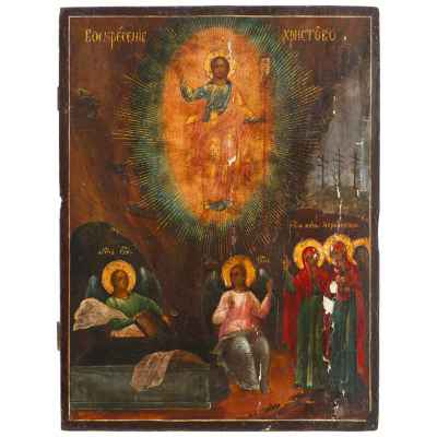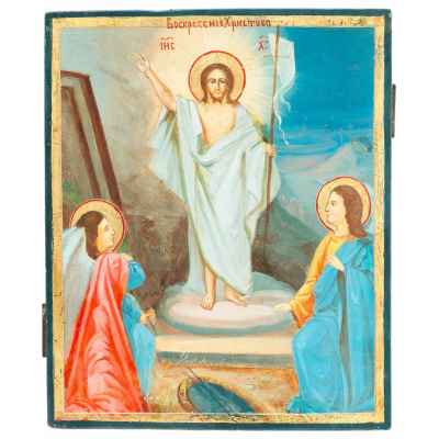 Воскресение Христово по установившейся православной традиции изображается в виде Сошествия Христа во ад. Это выражает смысл события воскресения Христова - освобождение томящихся в аду людей от уз тления и смерти. Подобная иконография праздника получила распространение в русских землях. Основой подобных икон в искусстве православного мира послужило апокрифическое (т.е. неканоническое) евангелие от Никодима, а также тексты псалмов. Существует несколько иконографических вариантов данного сюжета, которые различны и по положению фигуры Христа, и по составу персонажей. Во второй половине XVII века представляя Воскресение Христово, художники подражая западноевропейским гравюрам, изображали гроб, спящую стражу и подымающегося из гроба Иисуса Христа, часто окруженного сидящим в