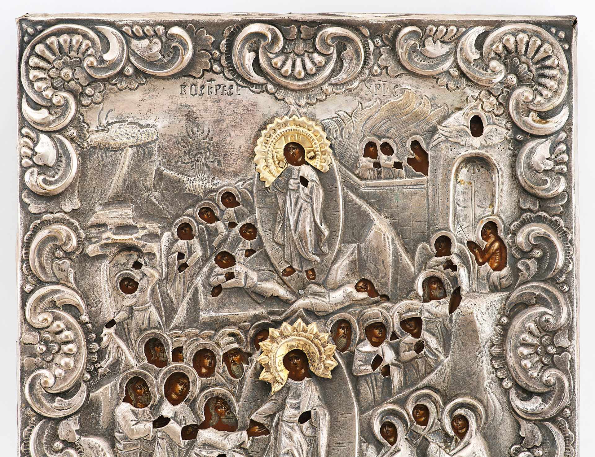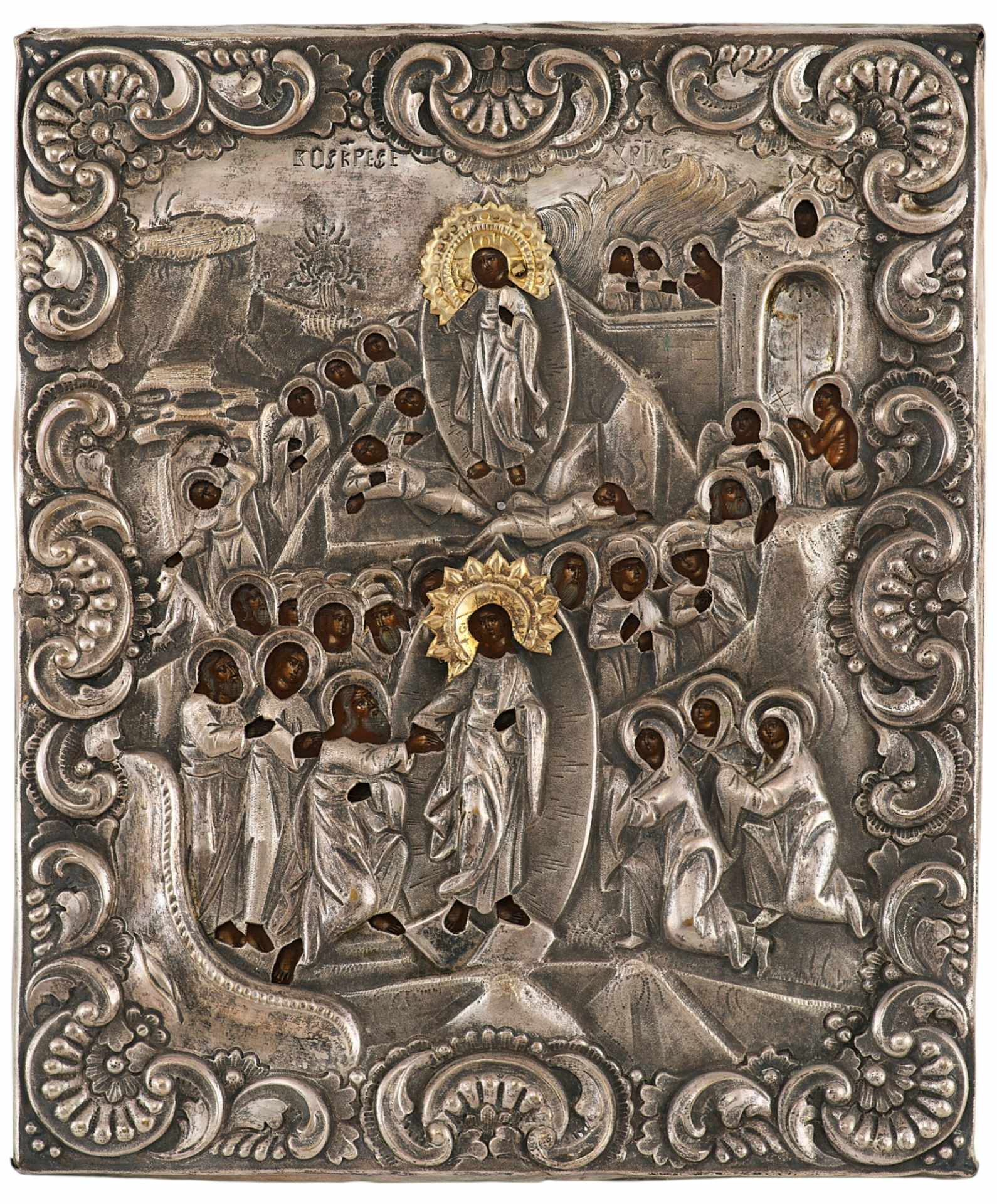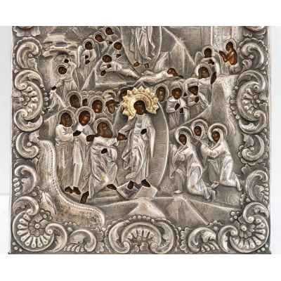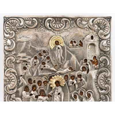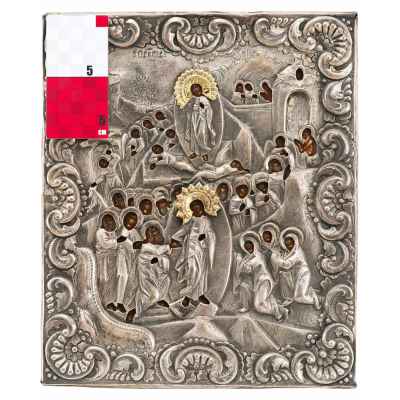 Икона в окладе Воскресение Сошествие во ад латунь, серебрение кон. XVIII в. 30,5x25,5 см. Вторая половина XIX века