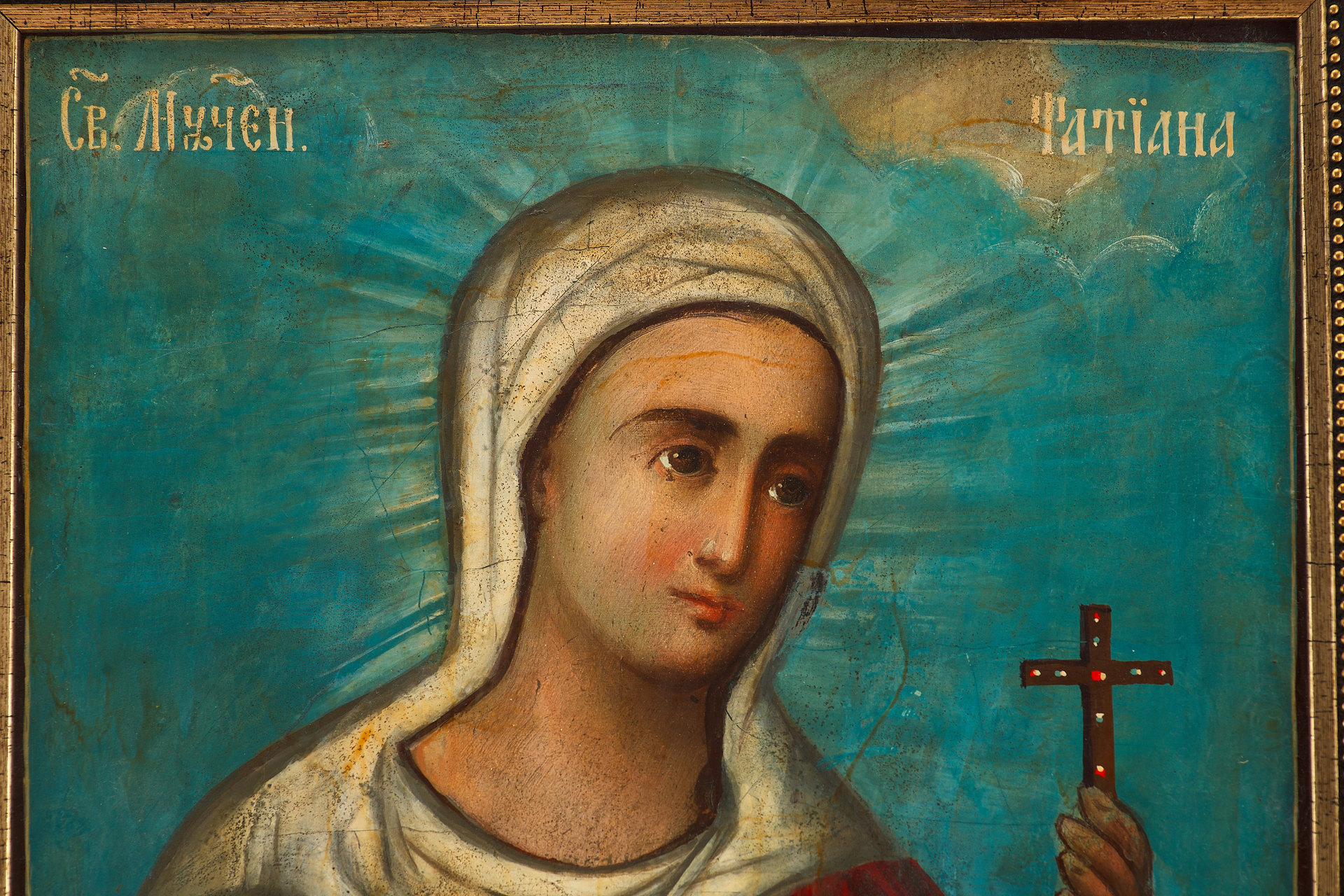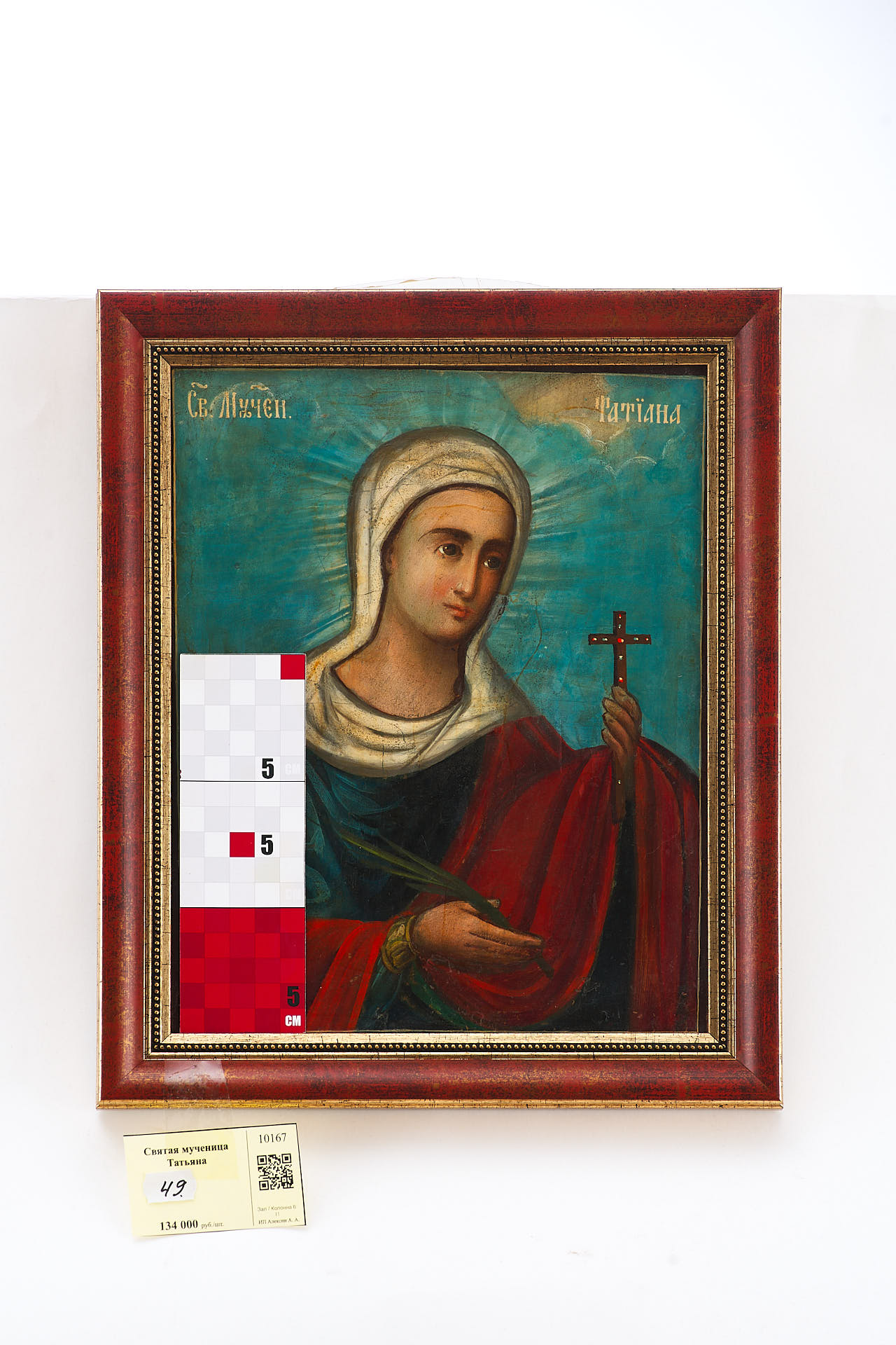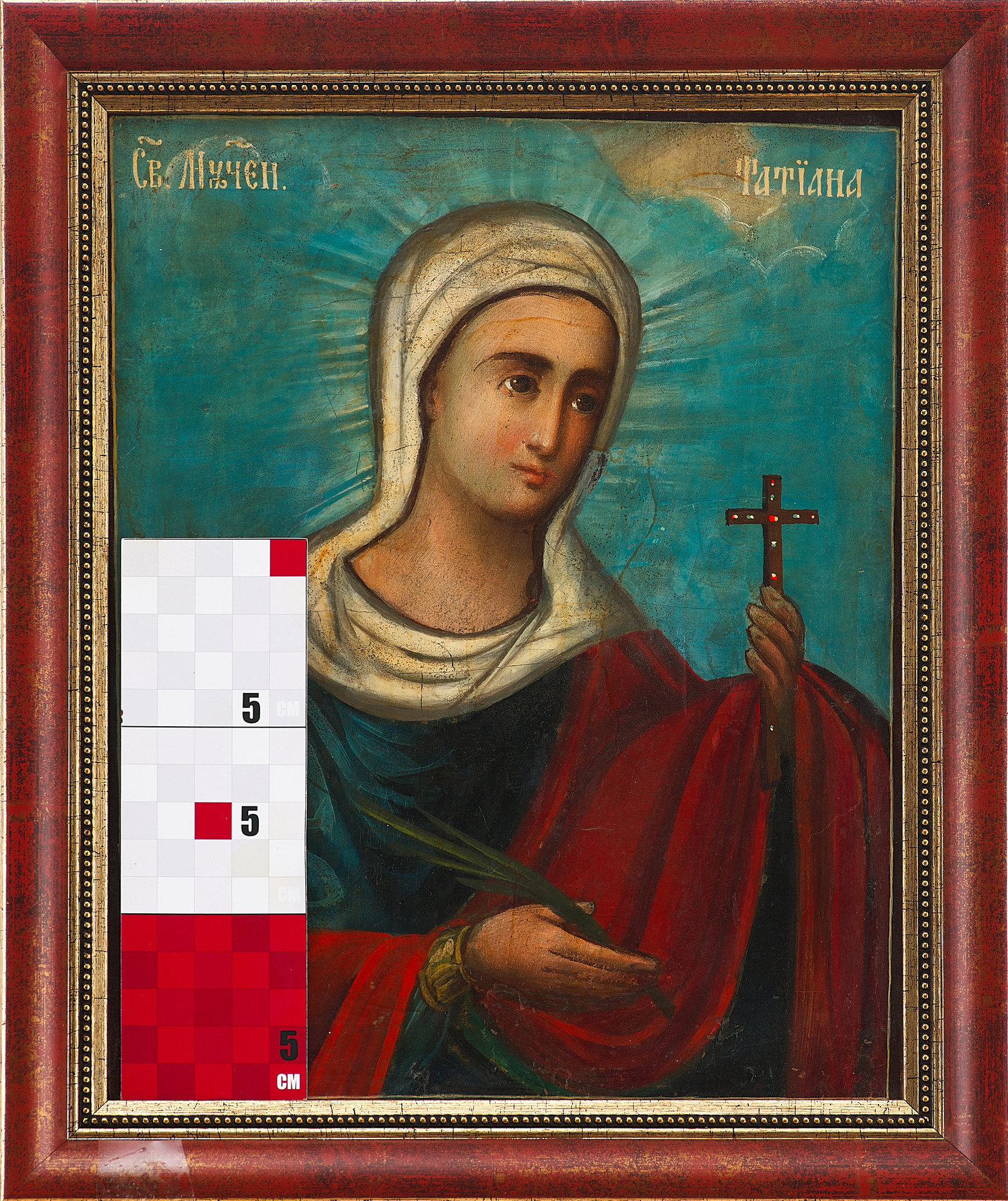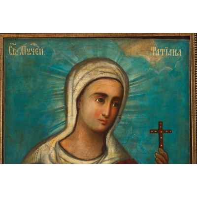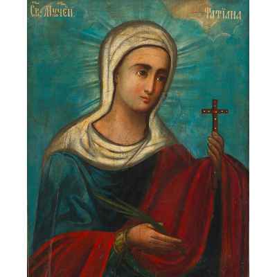Икона святой мученицы Татьяны относится к памятникам русской иконописи конца XIX — начала XX века и посвящена христианской святой, почитаемой как одна из ранних мучениц. На иконе изображена святая Татьяна Римская, держащая в правой руке оливковую ветвь, а в левой — крест, как символ её страданий и победы веры над смертью.