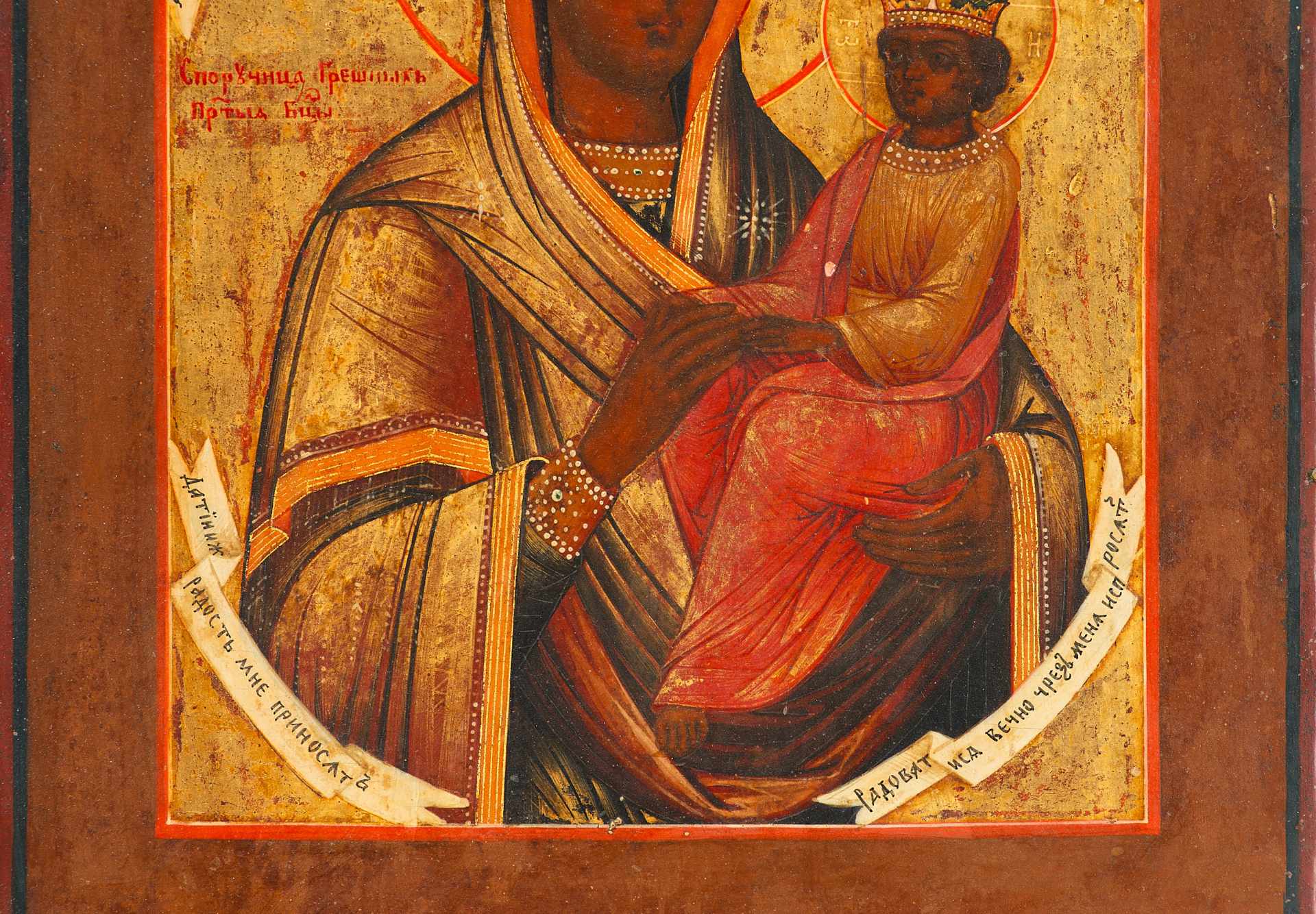 Икона Богоматерь Споручница грешных темпера сер. XIX в. 31,5x26,6x2,4 см. Вторая половина XIX века