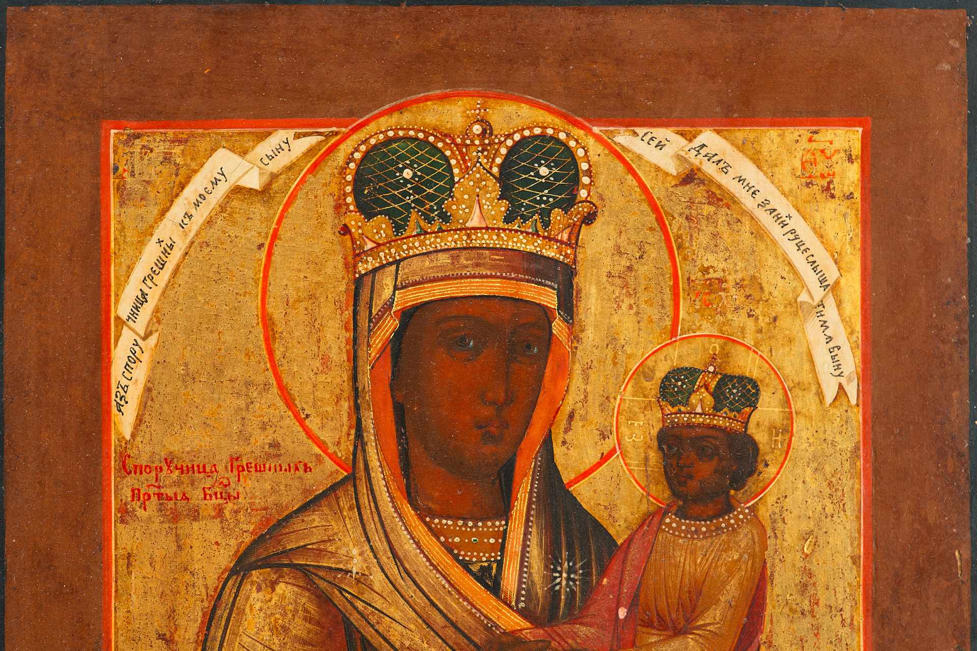 «Споручница грешных» икона Божией Матери, именуемая так потому, что Богоматерь изображена на ней с Младенцем