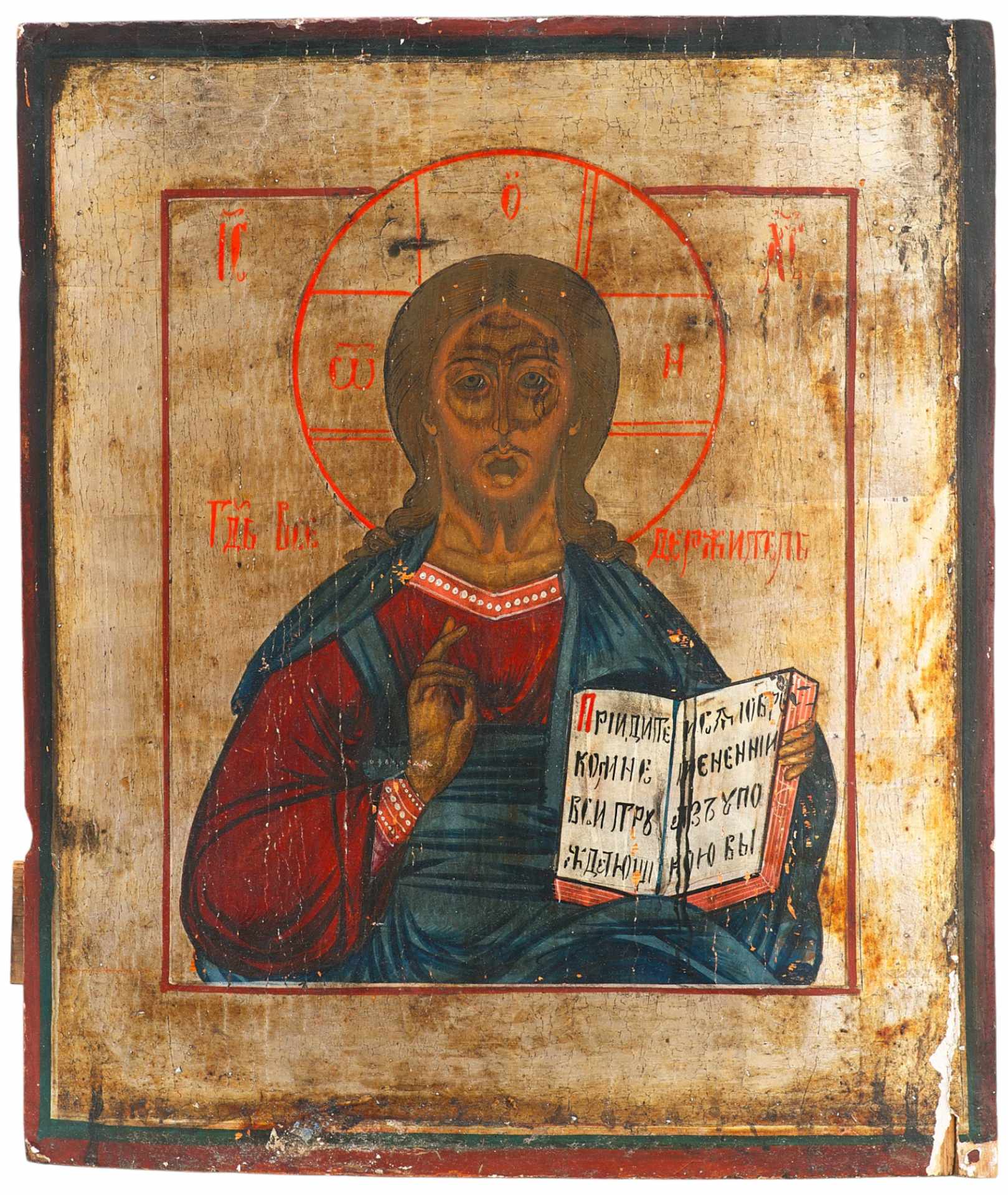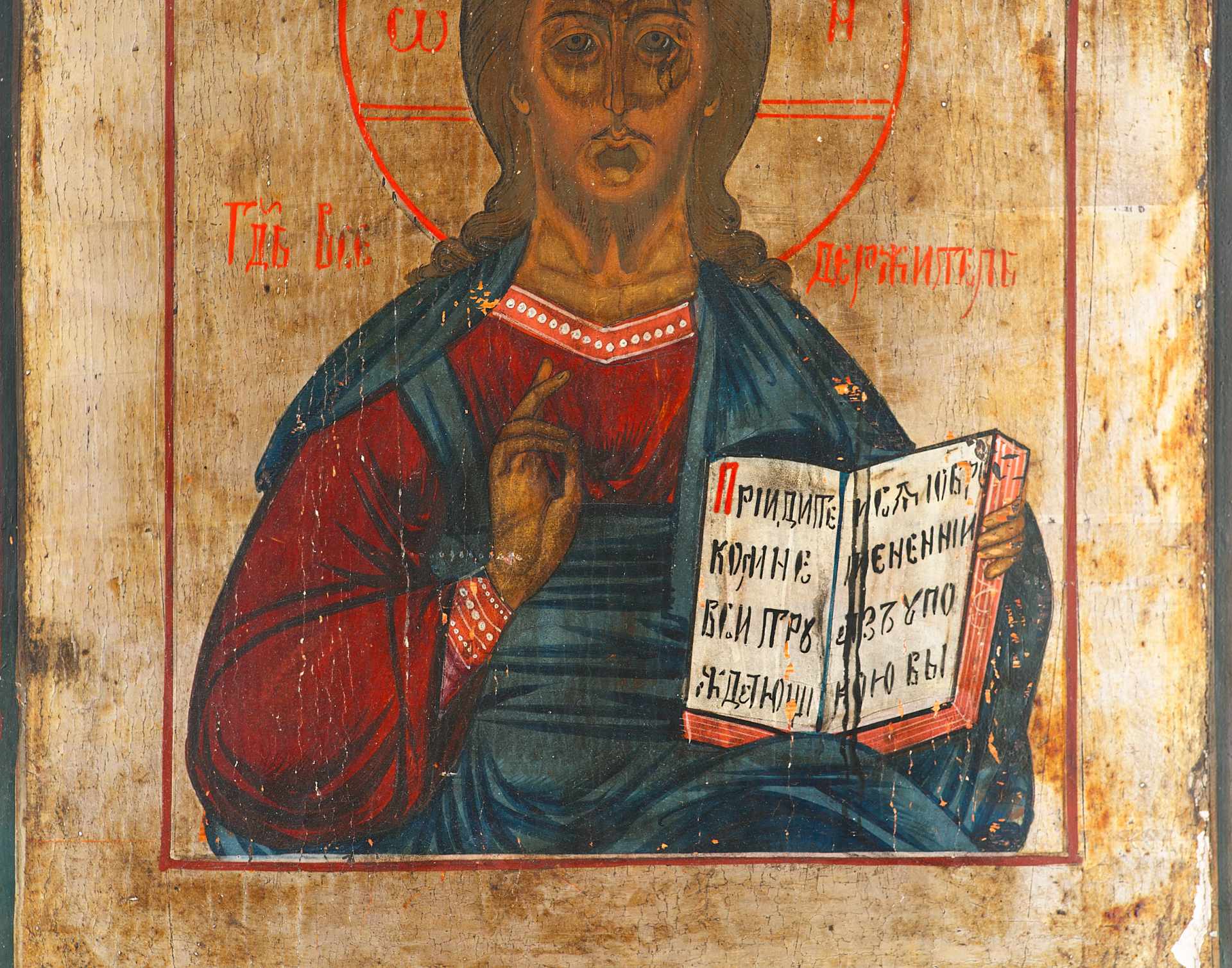 Изображение берет свое начало в Визангии, где оно стояло во главе всех иконописных типов как наиболее возвышенный образ Богочеловека, а затем, после принятия христианства, широко распространяется на Руси как сюжет фресковой росписи храмов и как моленная икона. На иконе Христос предстает как Судия мира и его Спаситель.