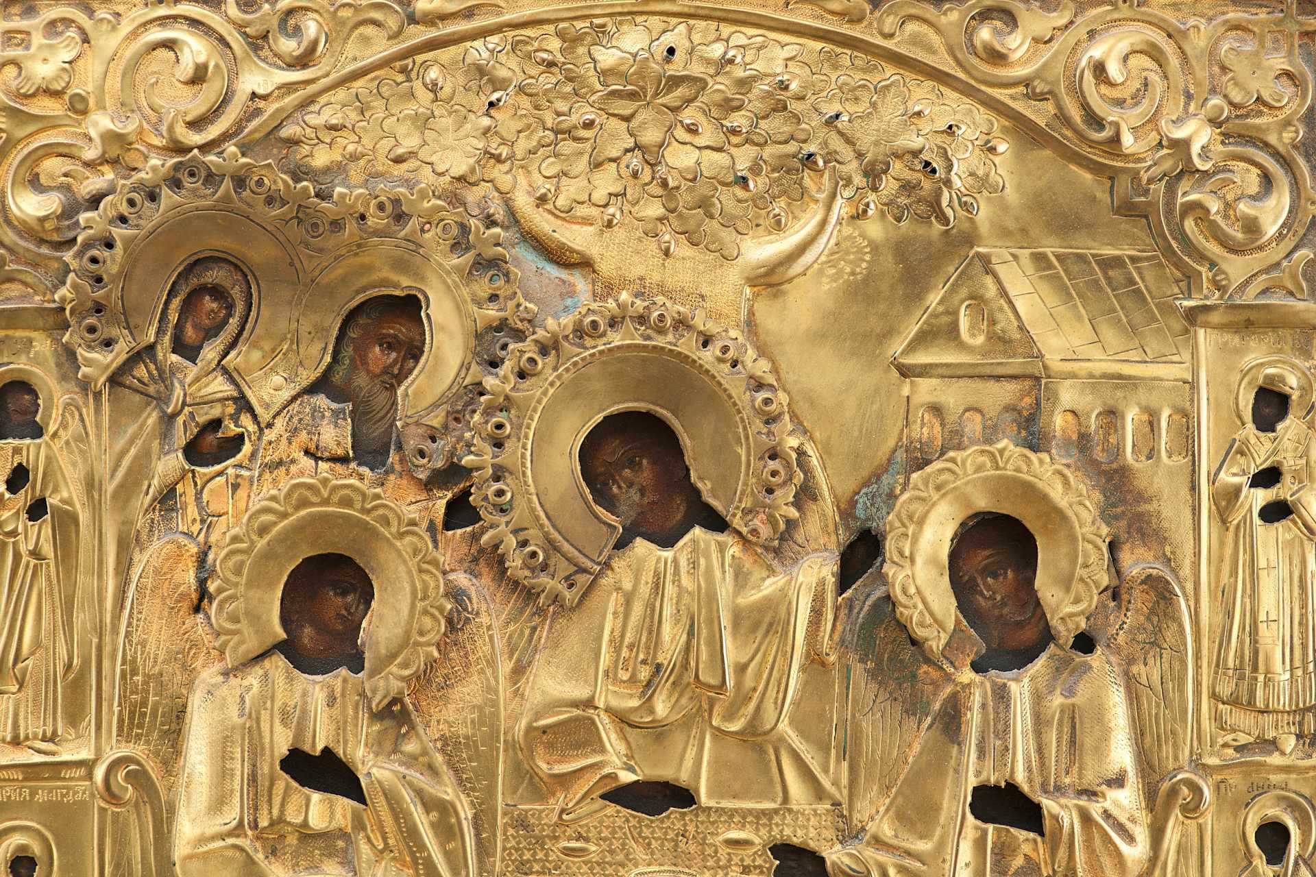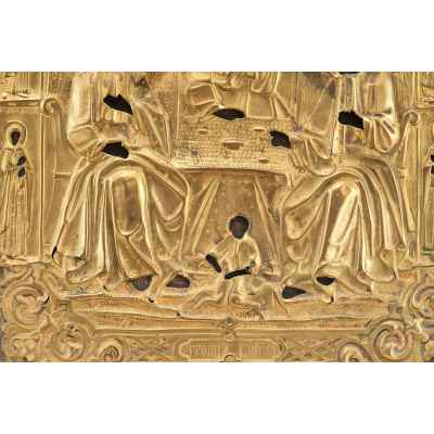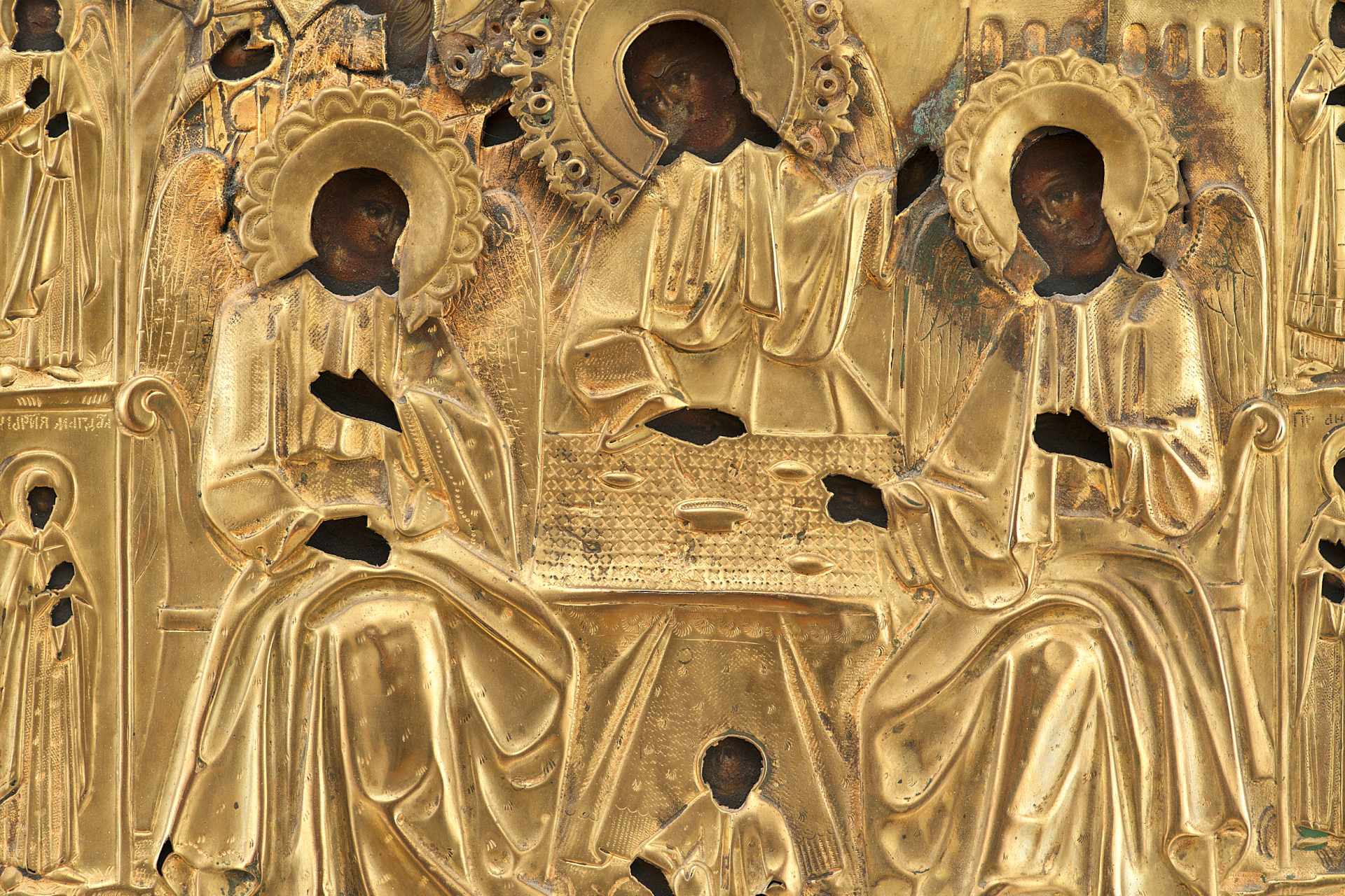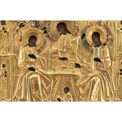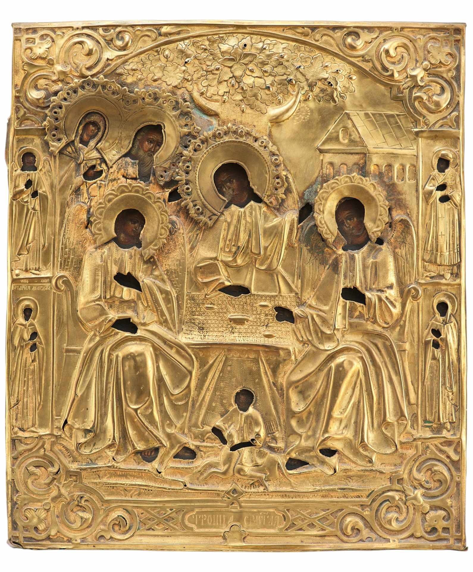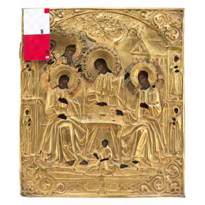 Икона в окладе Троица Ветхозаветная кон. XIX в. 36,3x31,3x2,5 см. Последняя четверть XIX века