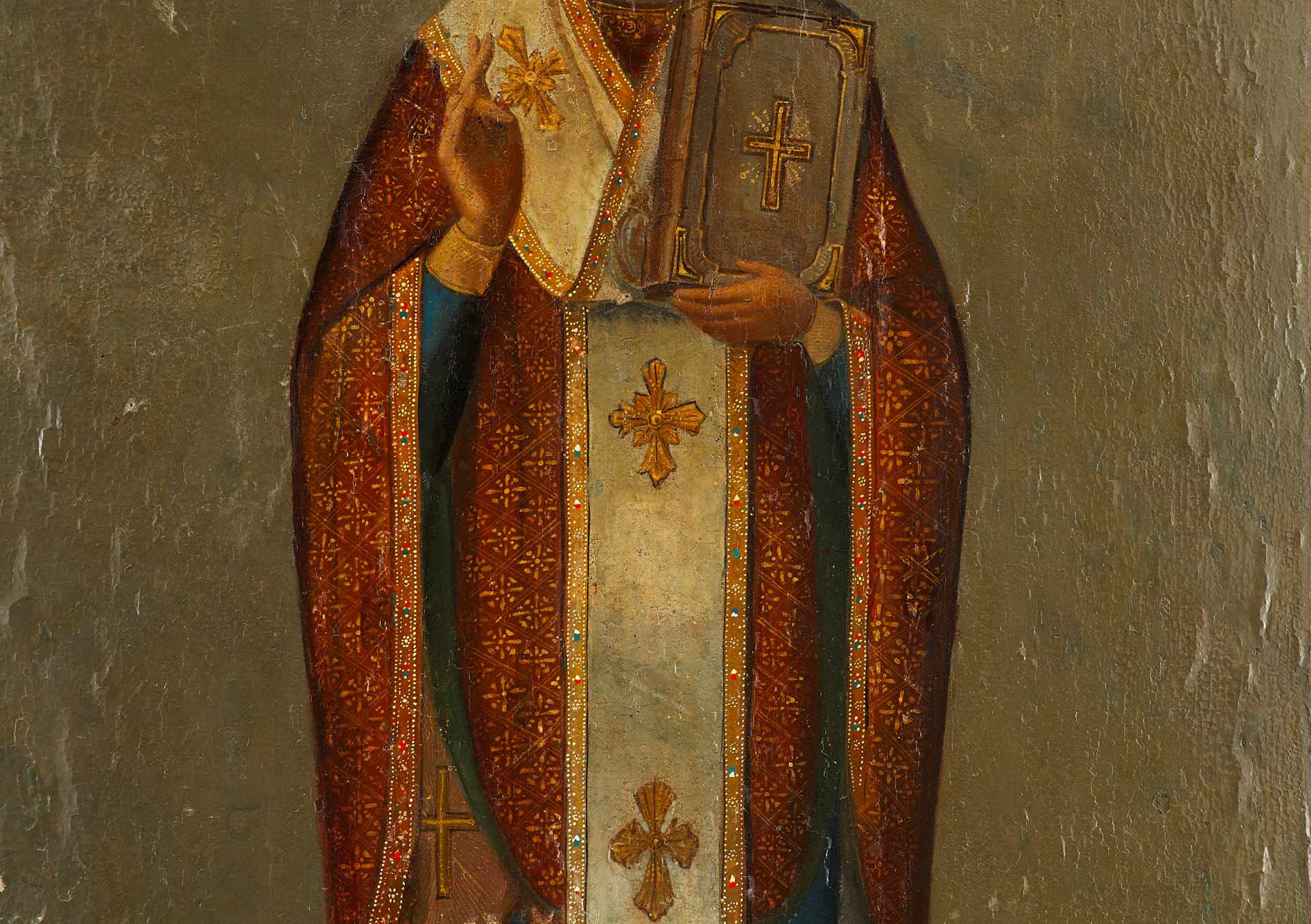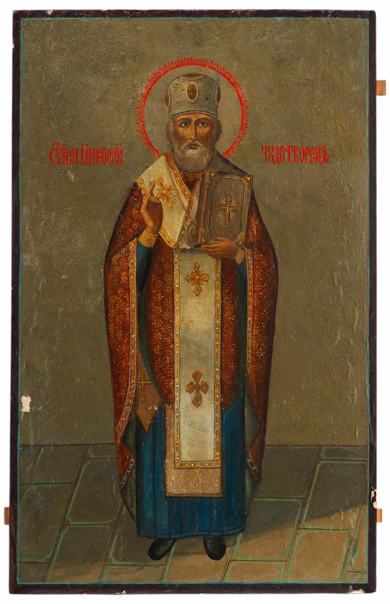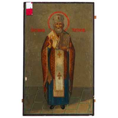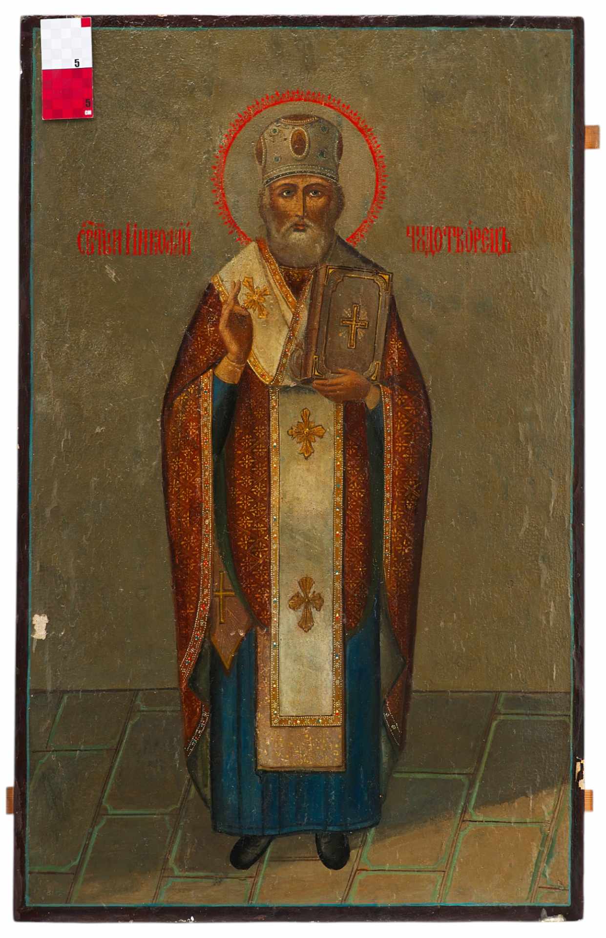 Храмовая икона Св. Николай Чудотворец масло XIX в. 89x56,5x2,8 см. Последняя четверть XIX века