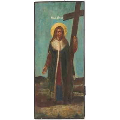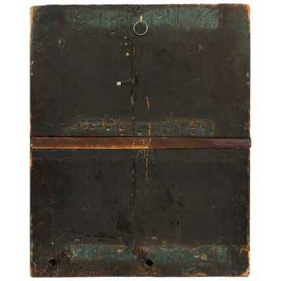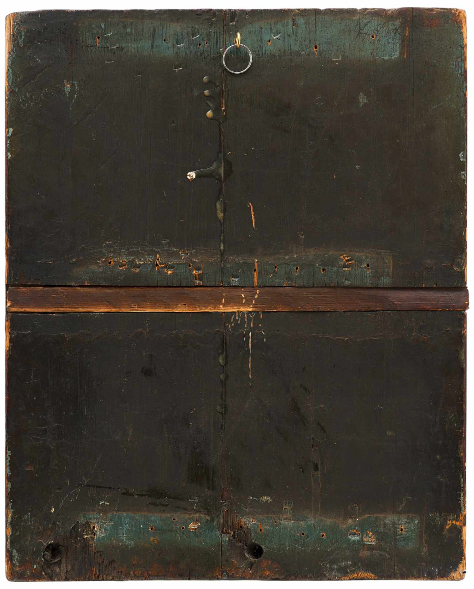 На обороте следы от гвоздевых отверстий от трех накладных шпонок. По своим художественным признакам икона относится к продукции иконописных мастерских второй половины XIX в.