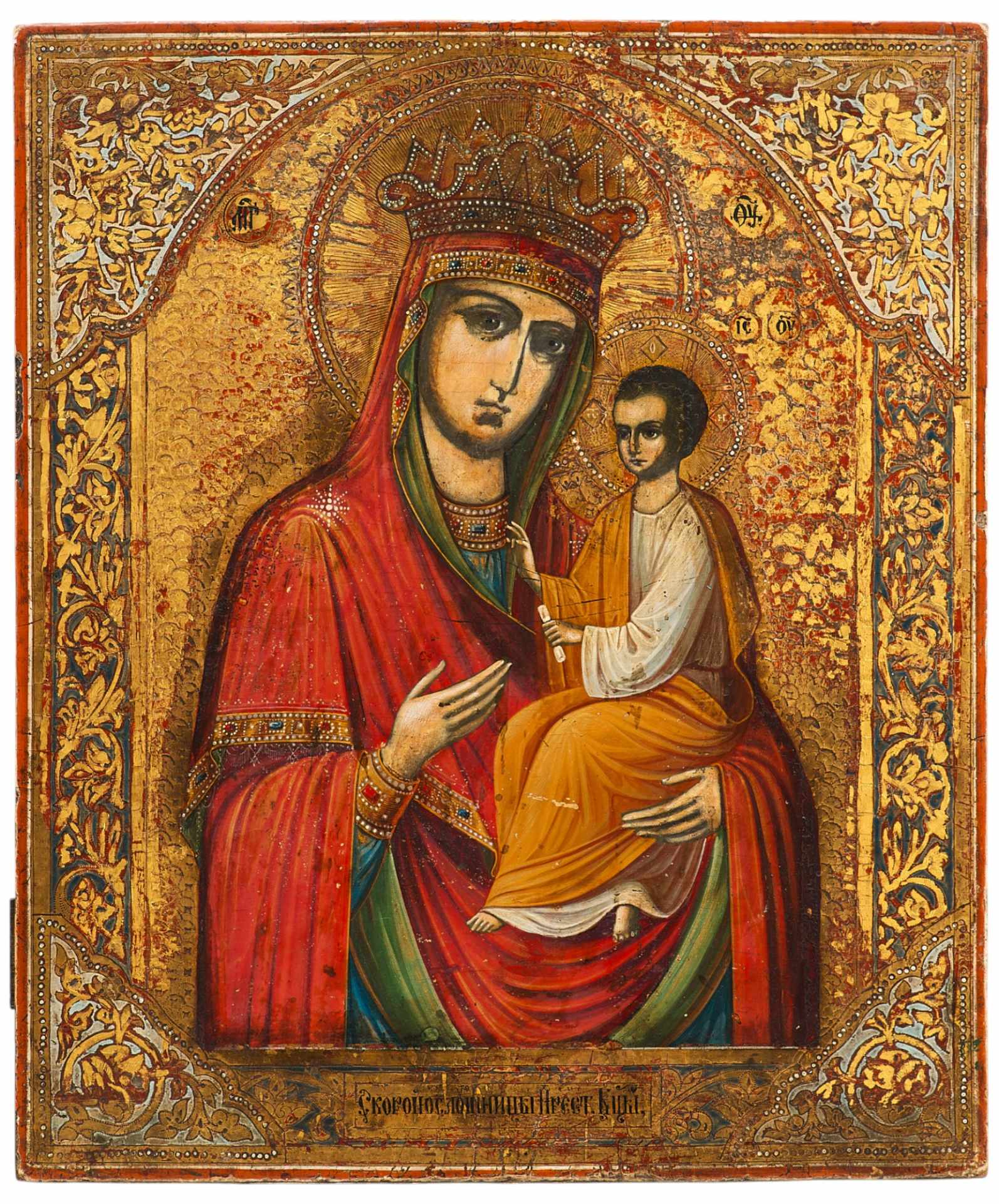 Икона Богоматерь Скоропослушница масло сер. XIX в. 44,7x38x2,9 см. Москва конец XIX - начало XX вв